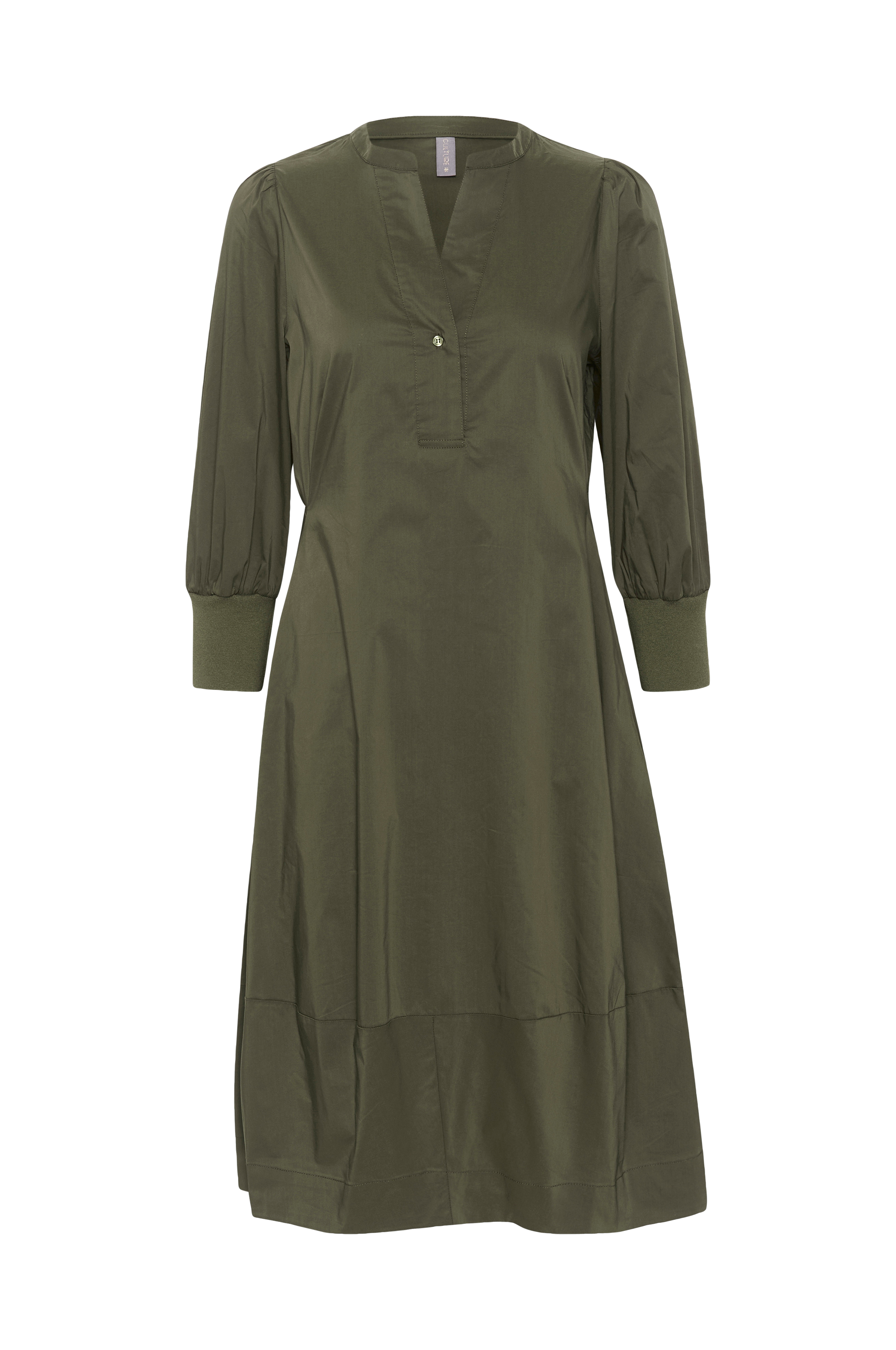 • Skinnende kjole• V-udskæring• 3/4 lange pufærmer• Manchet ved manchetterne• Sidelommer• Normal pasform• Længde: 105 cm i størrelse S