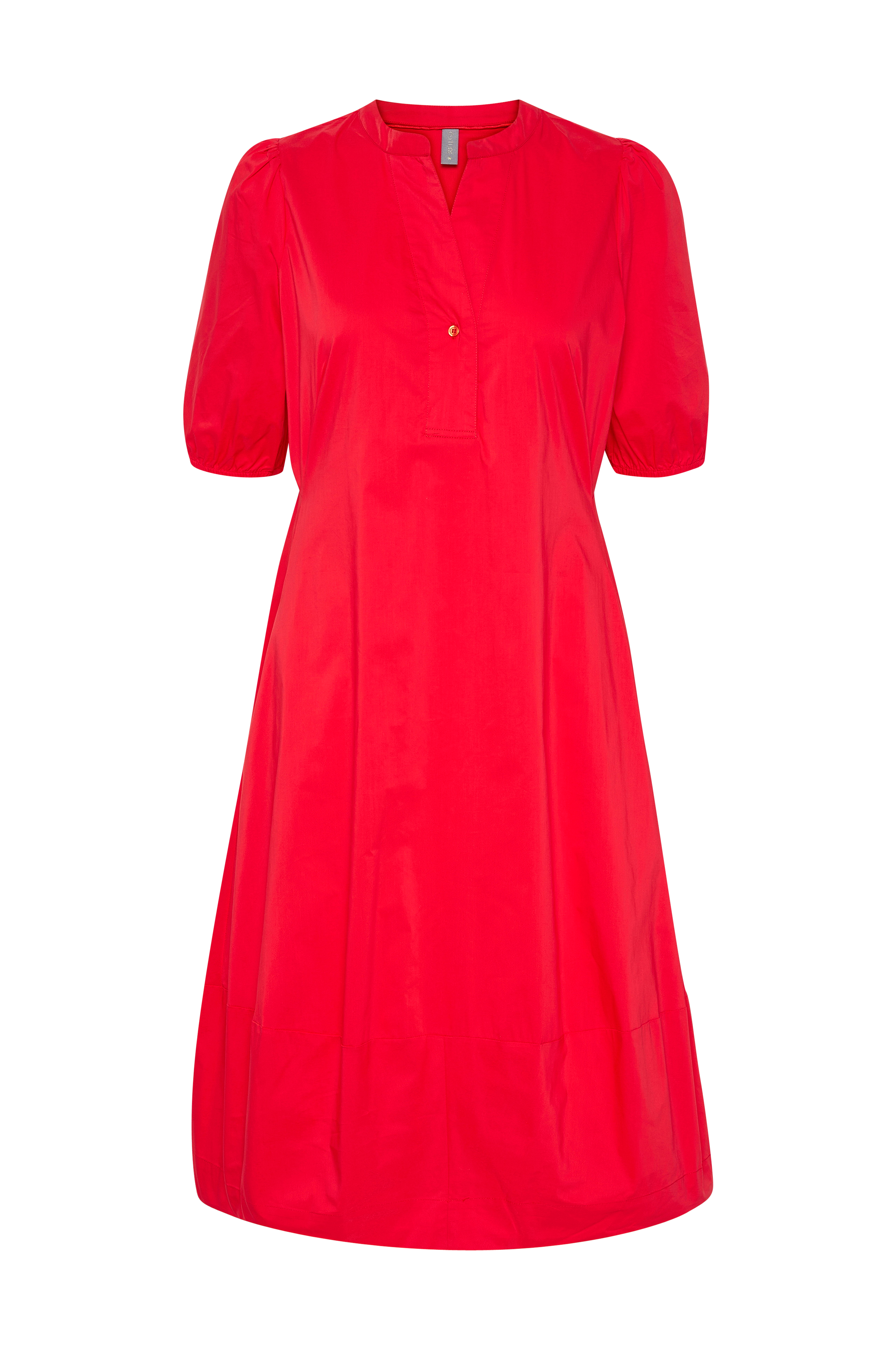 • Kjole med korte ballonærmer • V-formet halsudskæring med knapstolpe foran • Indsnit ved brystet • Normal pasform med svaj med midilængde • Længde: 109 cm i størrelse S
