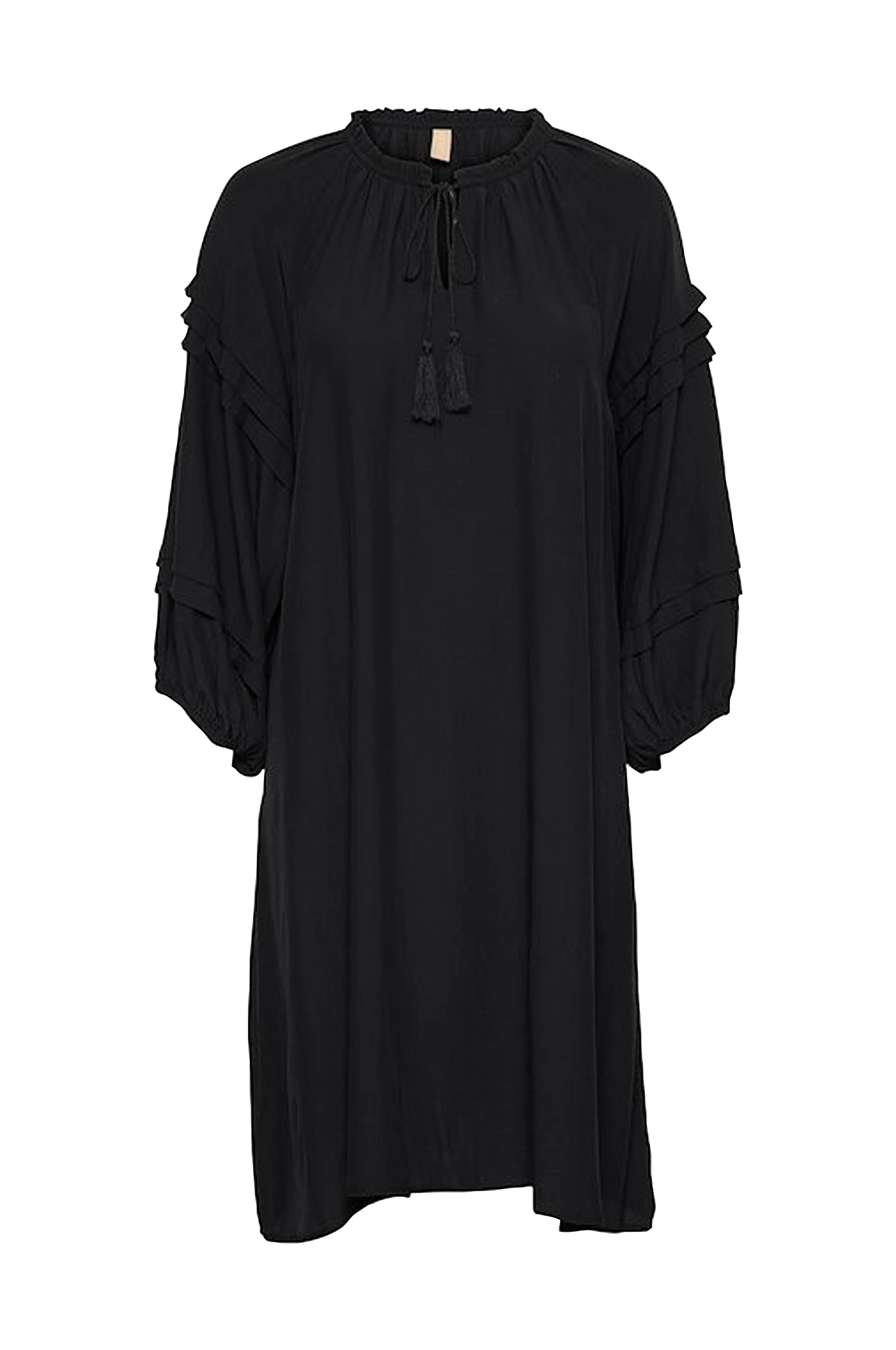 • Let udsvingende model• Rund hals med lille flæsekant og bindebånd foran• Bredt raglanærme med syede bokslæg og elastik ved manchetterne• Længde: 98 cm i størrelse S