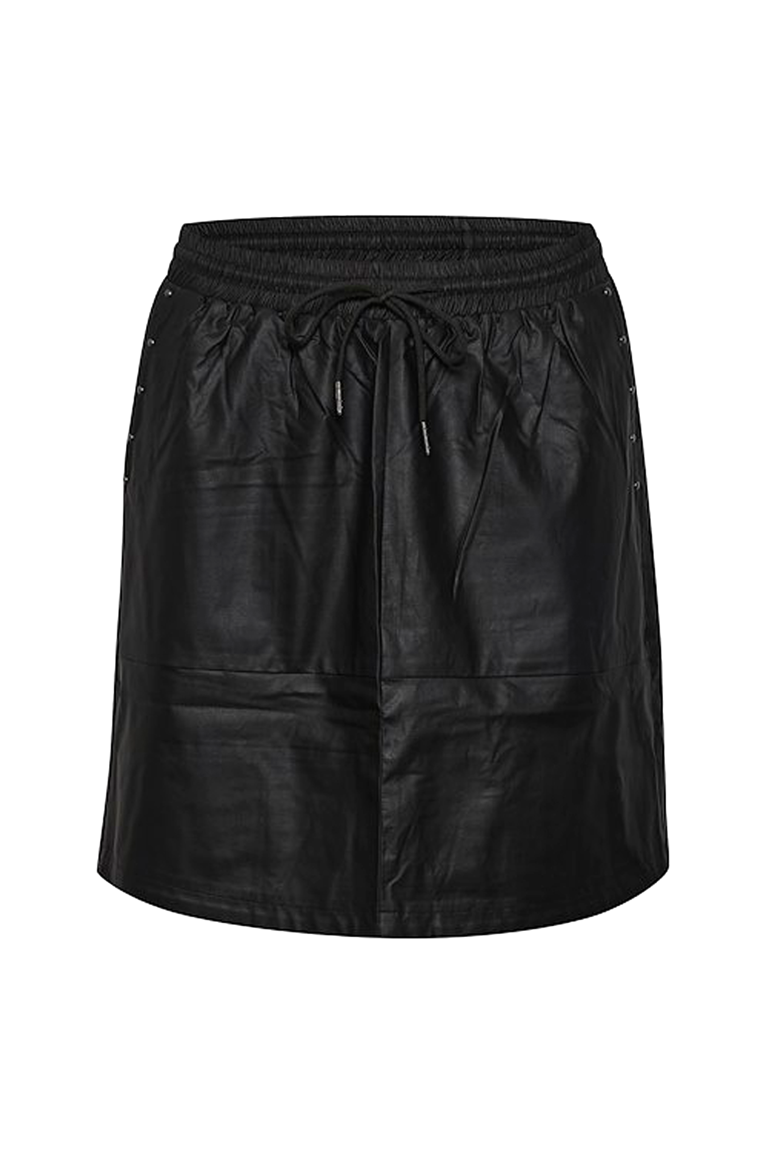 • Nederdel i læderlook• Elastisk talje med træksnørre• Sidelommer• Dekorative nitter foran• Længde: 49 cm i størrelse S