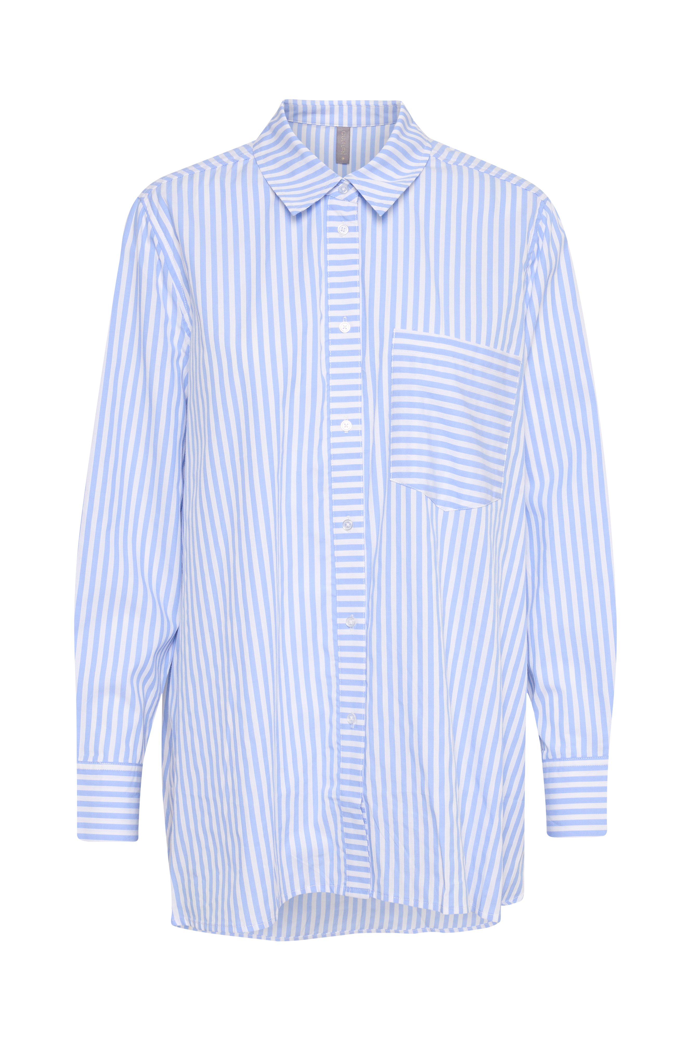 • Stribet skjorte• Oversize model• En brystlomme• Knapper foran