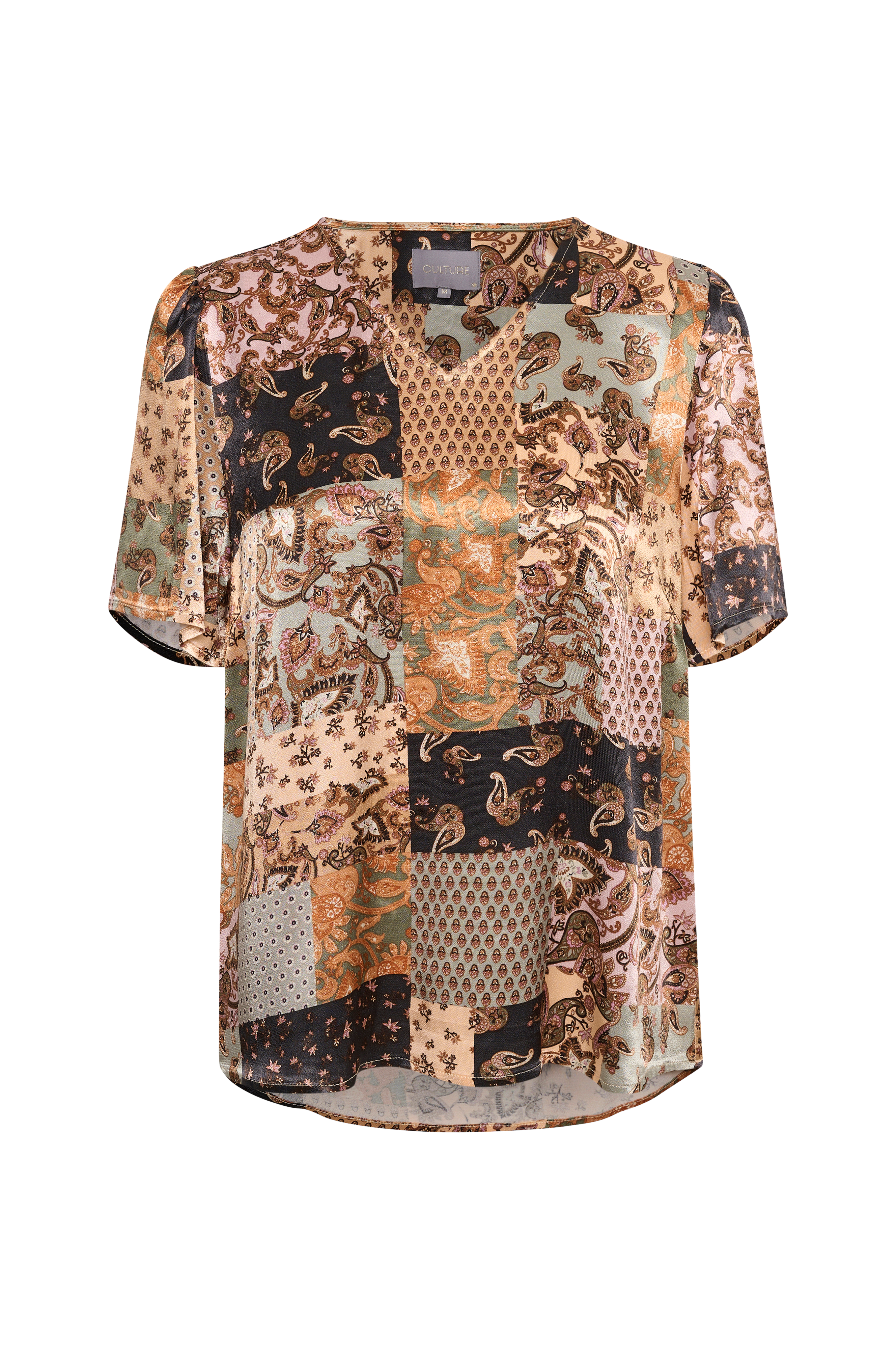 • Lige model i satin• V-formet halsudskæring• Kort ballonærme