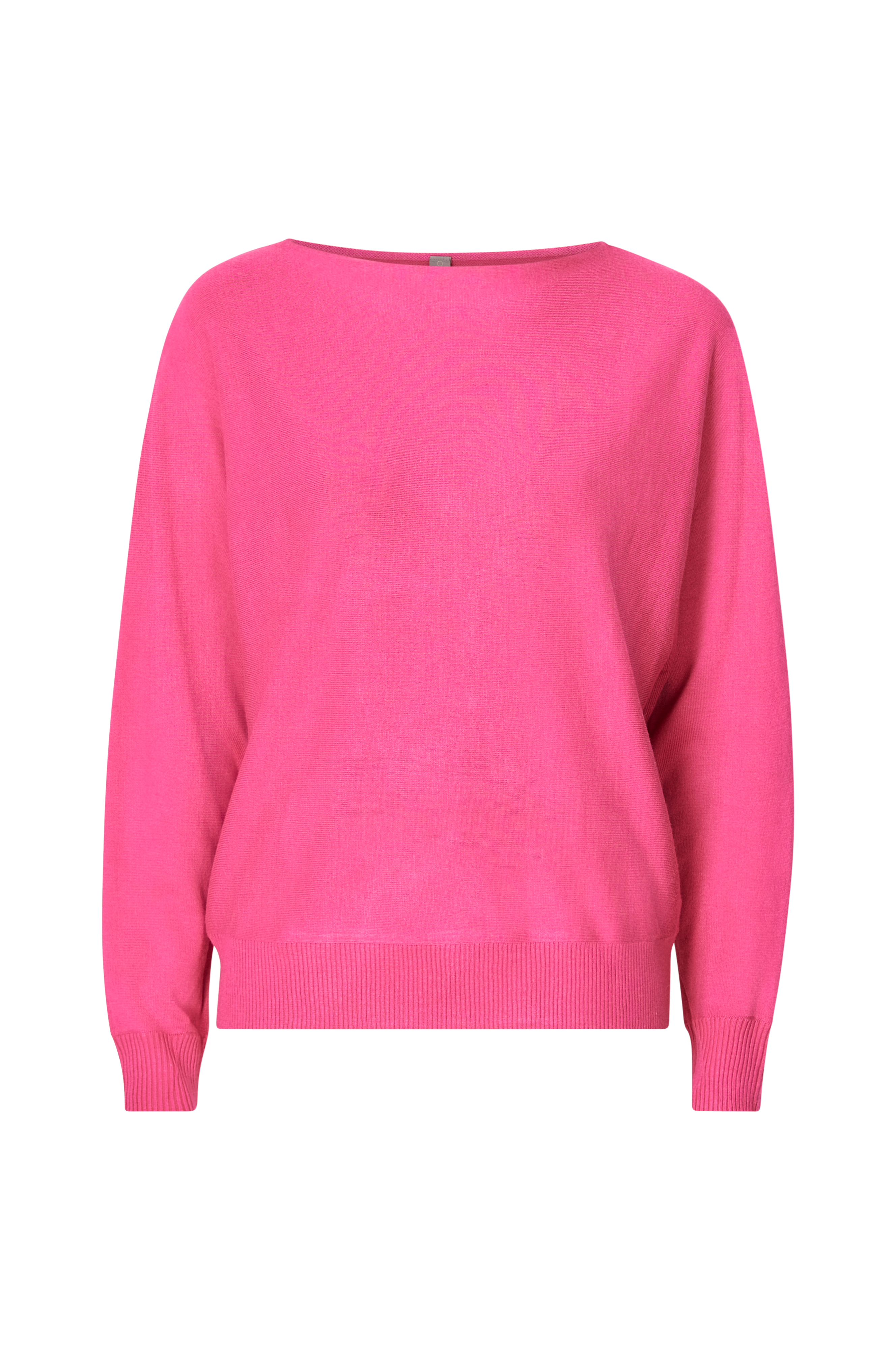 Finstrikket trøje i blød viskoseblanding. Flagermusærmer og ribstrikket kant forneden og ærmekant. Videre pasform foroven.