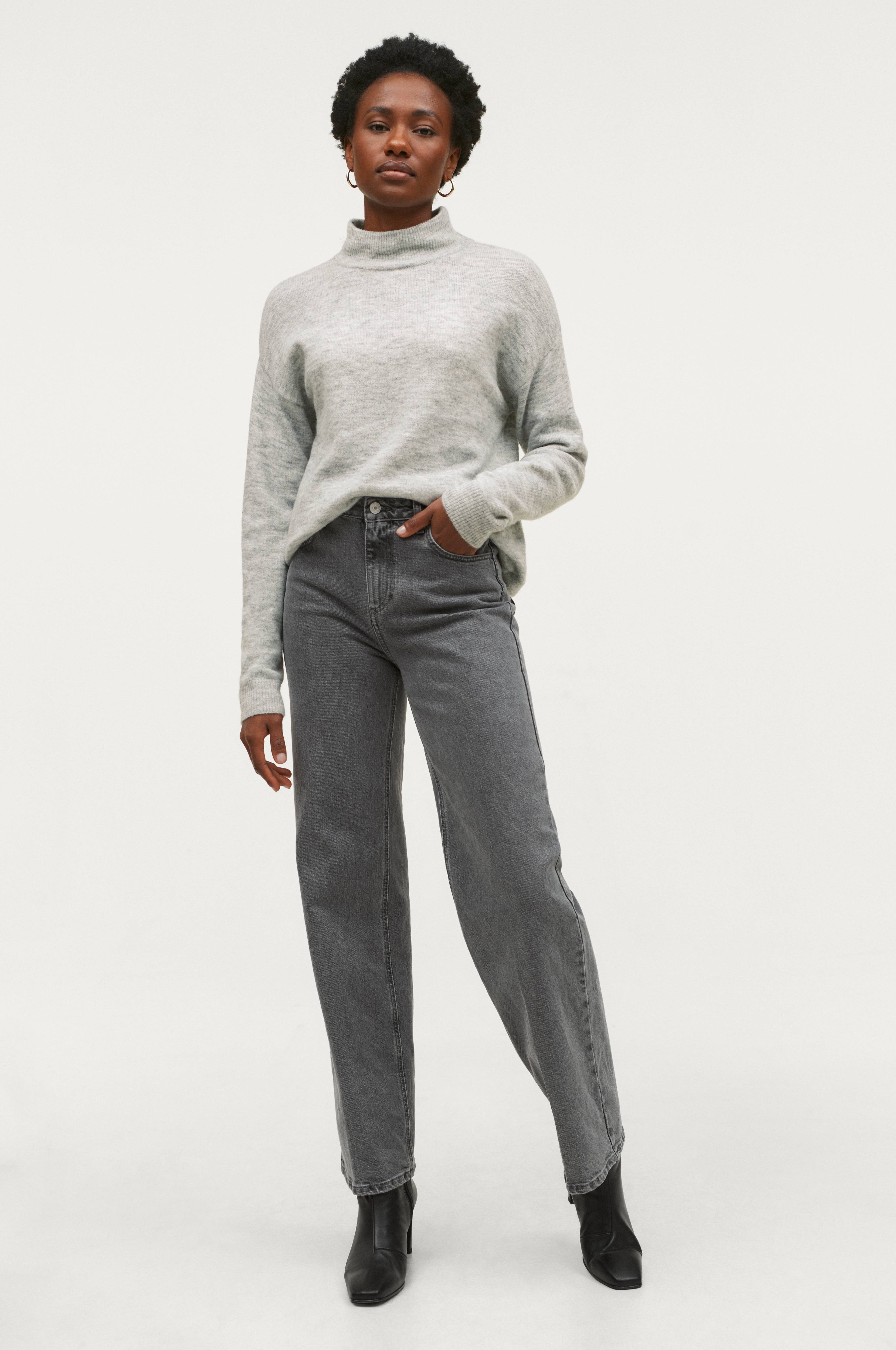 • Høj talje • Femlommemodel • Lige, brede ben • Fremstillet af denim • Produktet indeholder økologisk bomuld, som er dyrket uden kemiske sprøjtemidler, kunstgødning og genmodificerede afgrøder (GMO). Dette betyder et sundere arbejdsmiljø for landmænd og bedre jord.