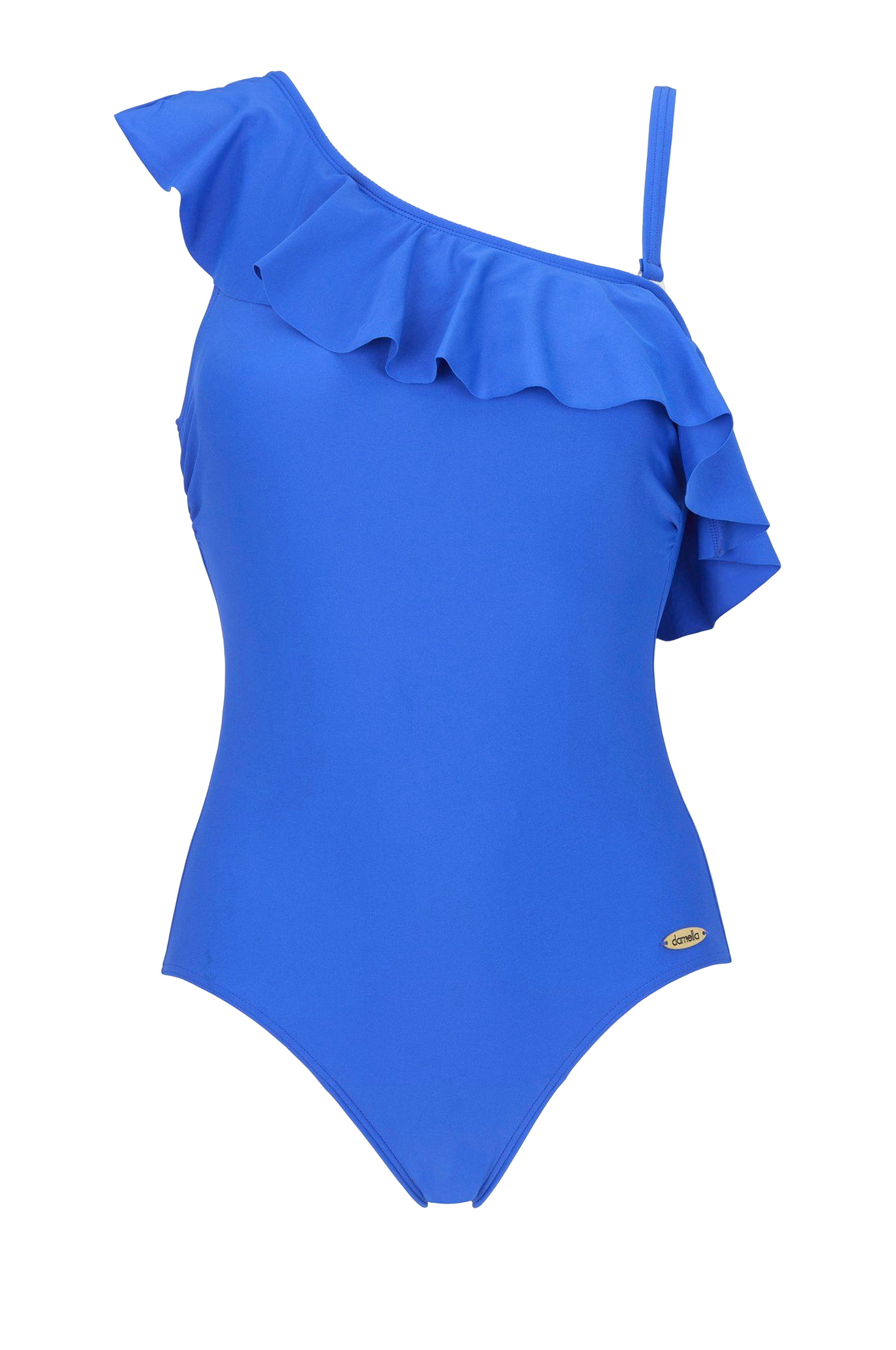 • Model med asymmetrisk pasform på toppen• Volant på toppen og på en skulder• Justérbar, aftagelig skulderstrop• Formede, let forede skåle• Foret skridt