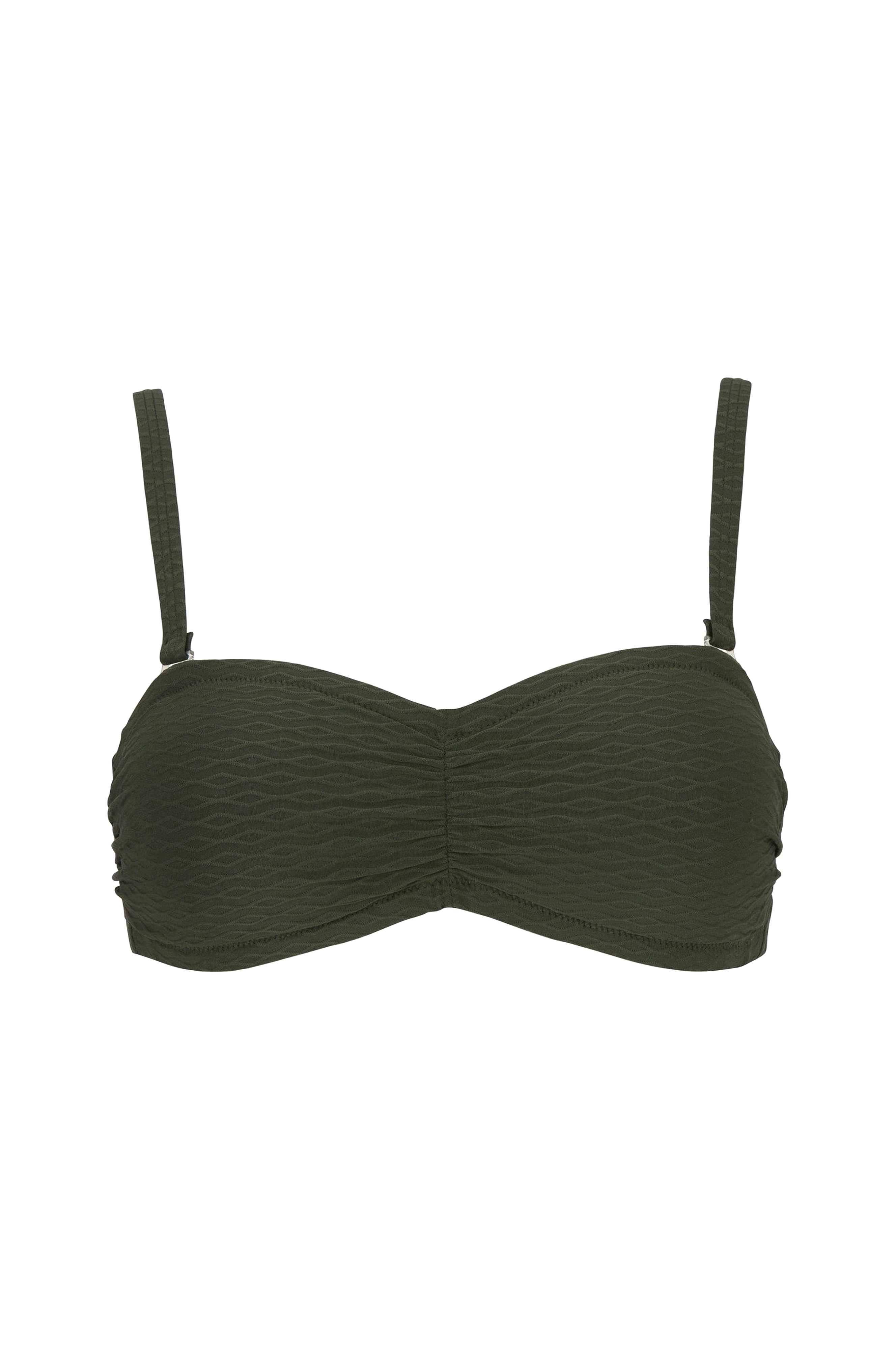 • Bikini-bh i nylonmateriale med strukturmønster• Justérbar, aftagelig skulderstrop• Skåle med tynd polstring• Spænde i ryggen• Sammenfoldet design mellem skålene med aftageligt nakkebånd til alsidig brug