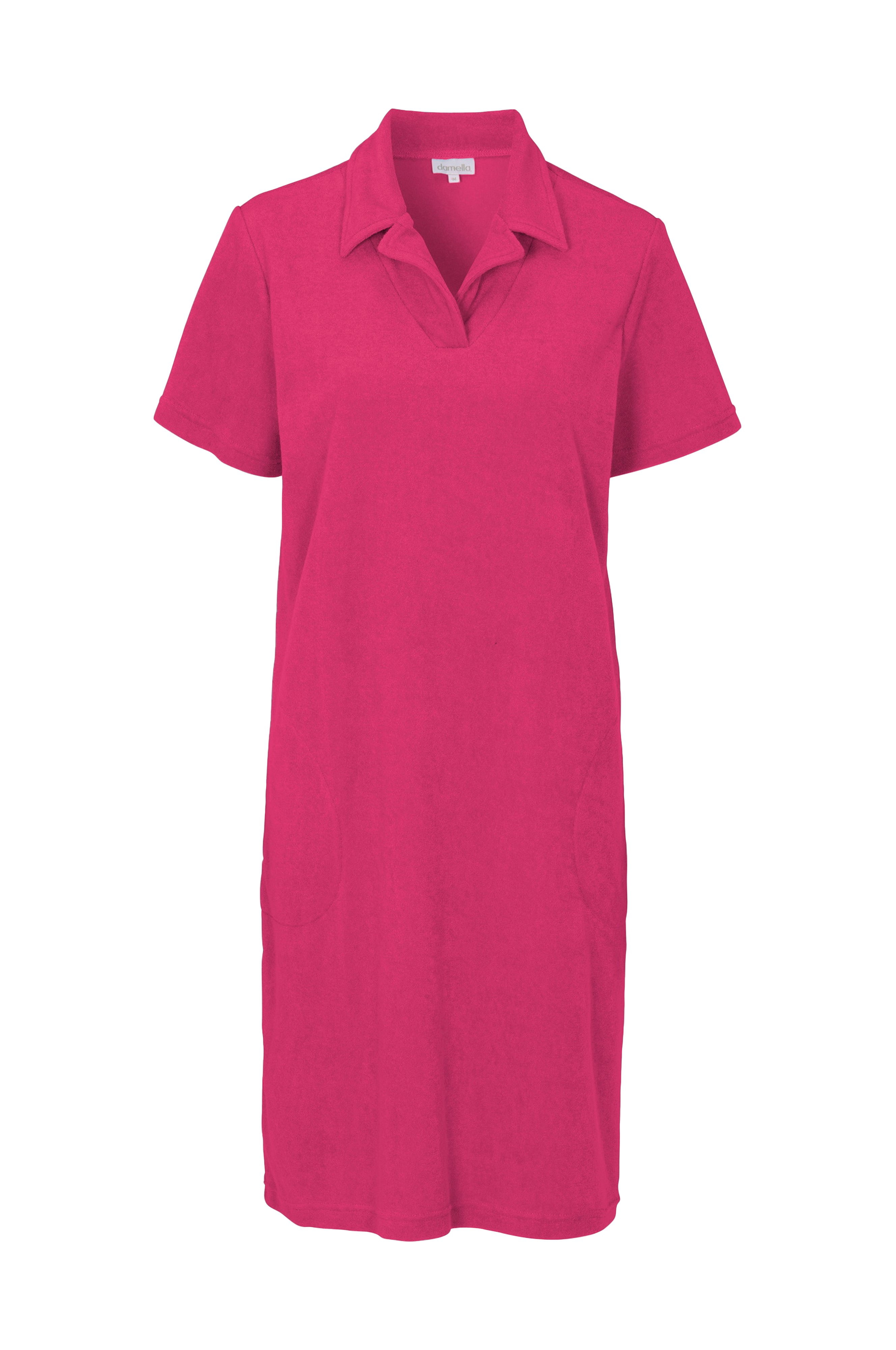• Kjole i blød, elastisk frotté• Krave• V-hals• Korte ærmer• Længde: 100 cm i størrelse S