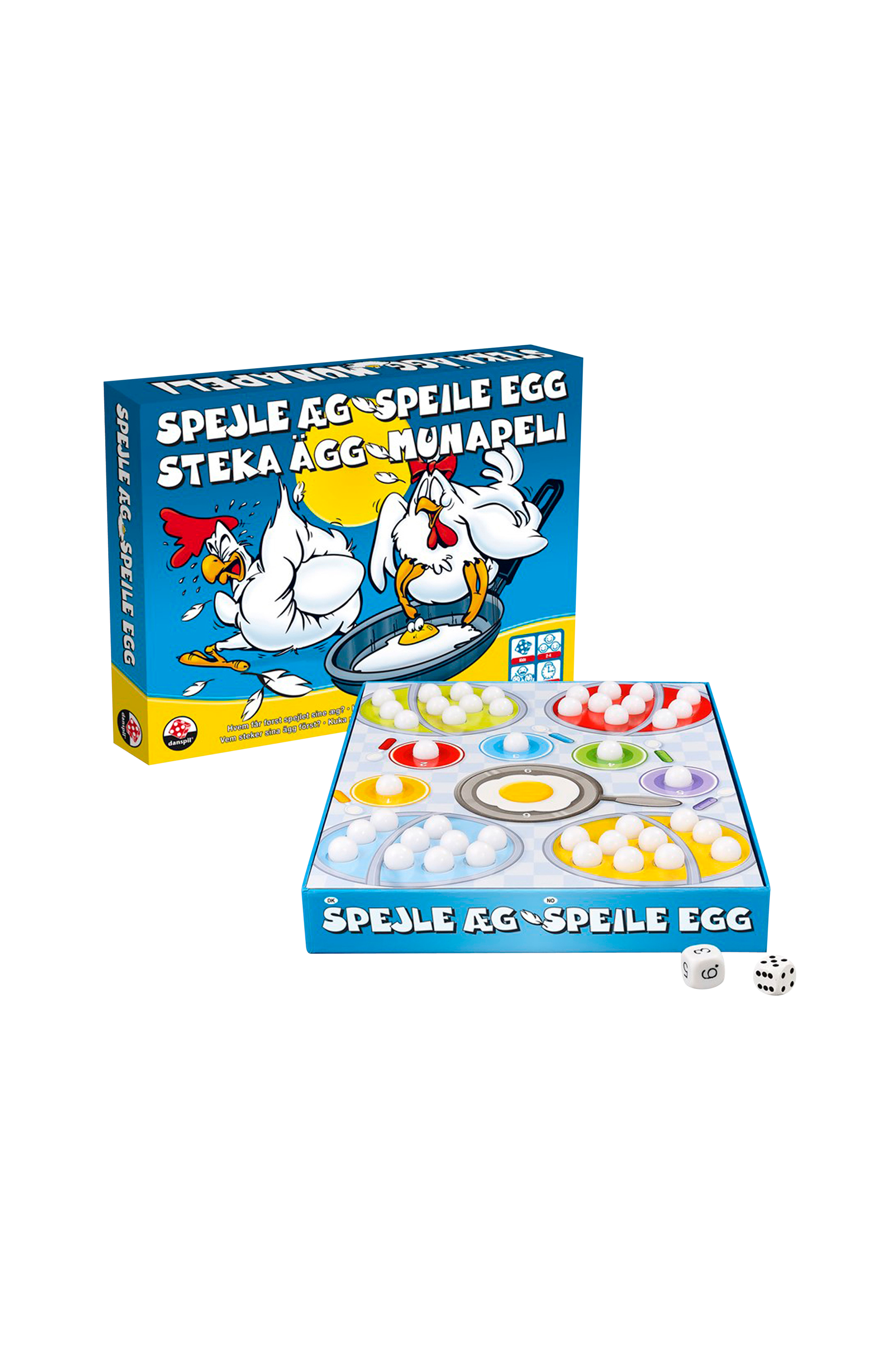 Spejle Æg er et spændende og taktisk terningspil for hele familien. Det gælder om at slå terningen, og derefter enten tager eller lægger man æg. Vinderen er den spiller, som først kommer af med alle sine æg. Taberen er den spiller, som til sidst sidder med æg tilbage i kurven.
