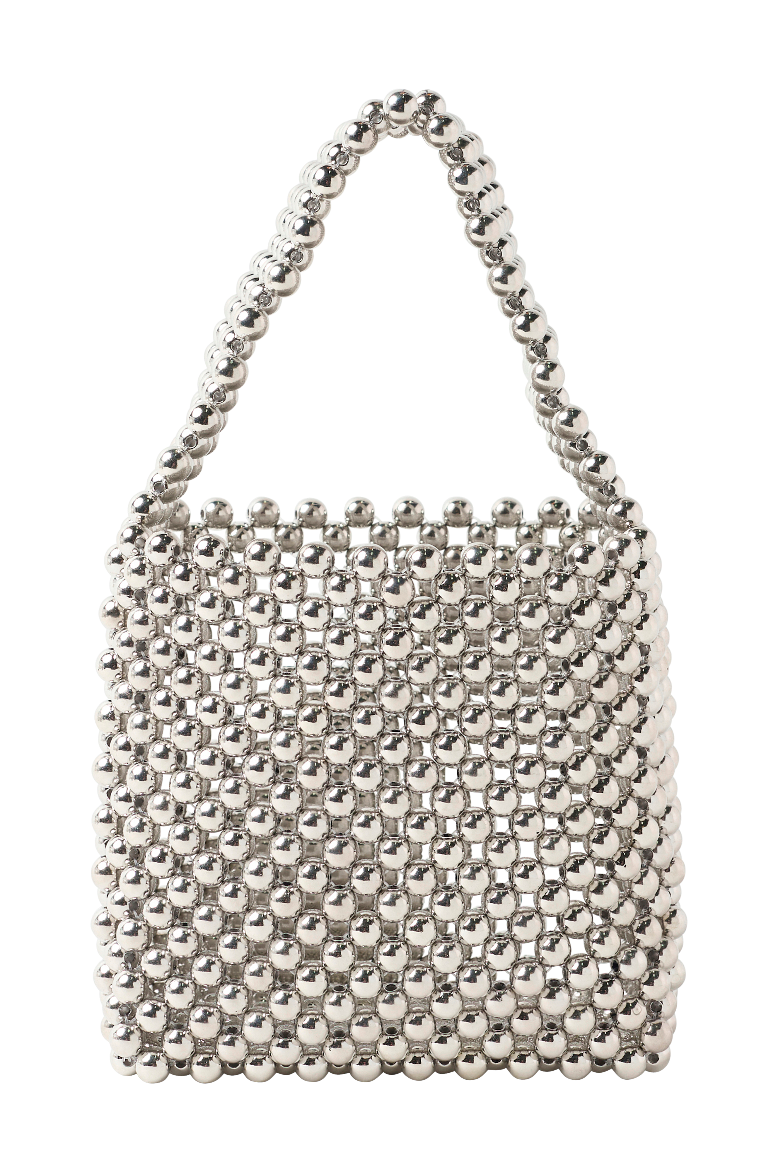 • Håndtaske i perle• Bærehåndtag• Aftagelig skulderstrop• Åben hovedrum