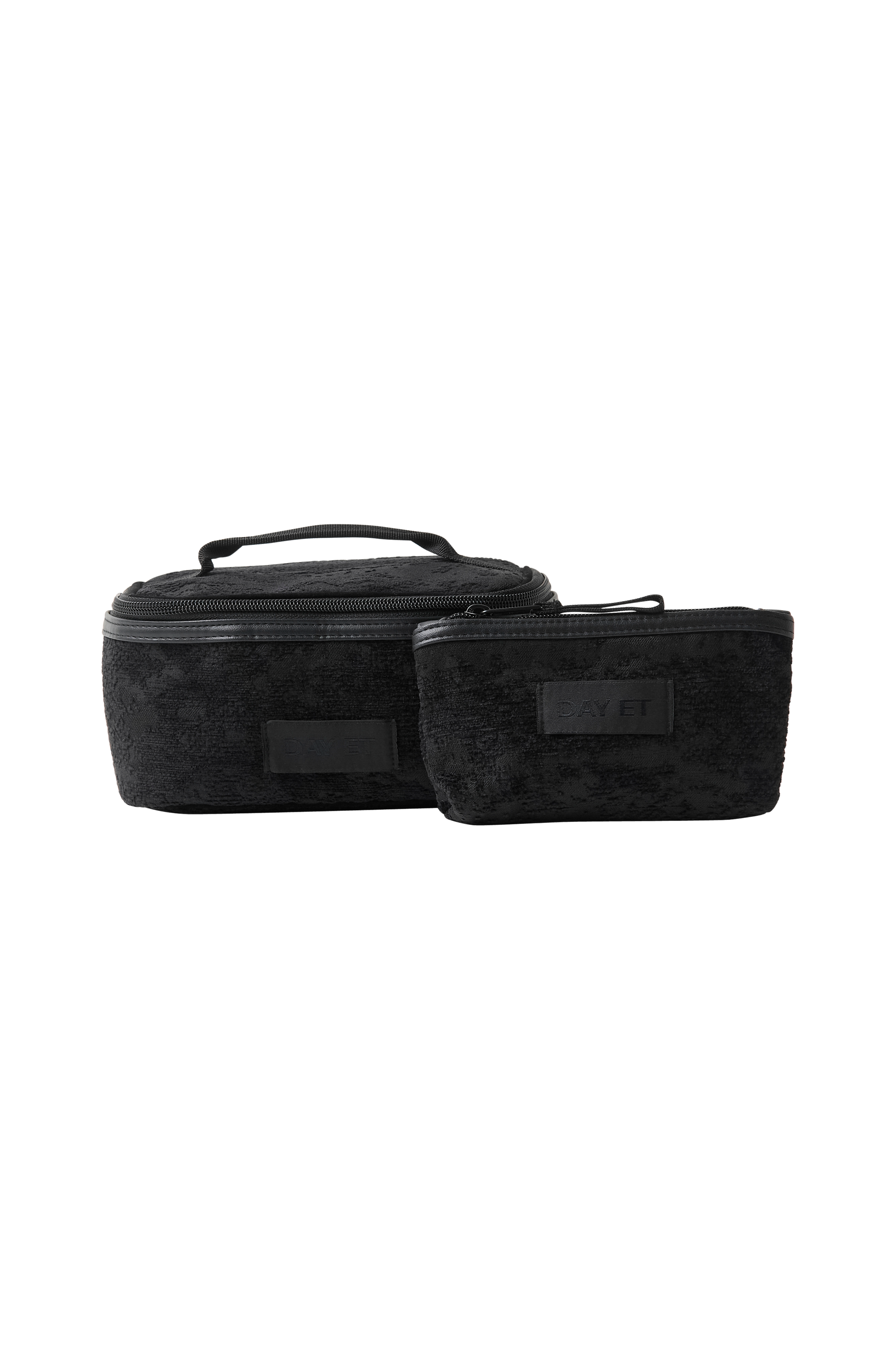 • Makeup taske med lynlåslukning og håndtag• En indvendig meshlomme• En åben inderlomme• Elastikrem• En lille, indvendig taske• Tekstilforing