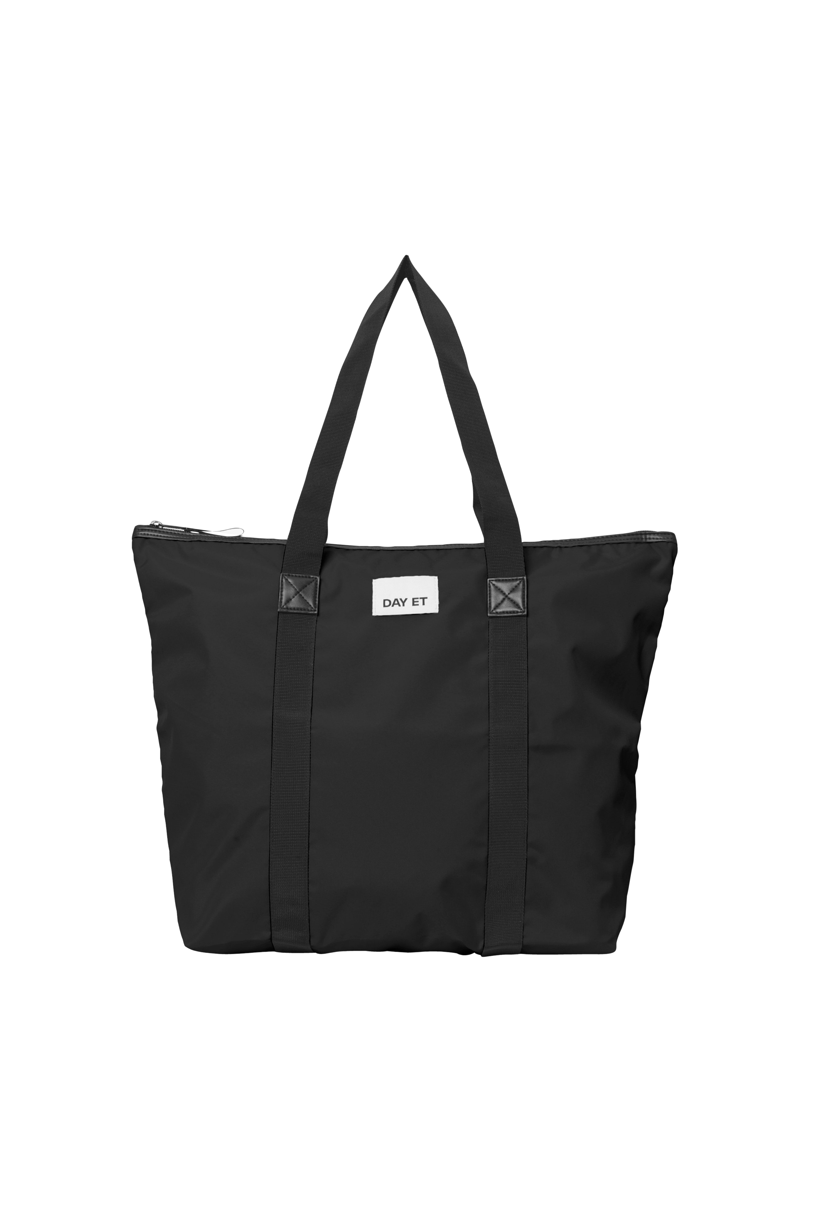 Taske i slidstærk, genindvundet polyester. Stor model med lange bæreremme i tekstil og detaljer foroven i imiteret skind. Åbnes med lynlås foroven og har en indvendig lynlåslomme.