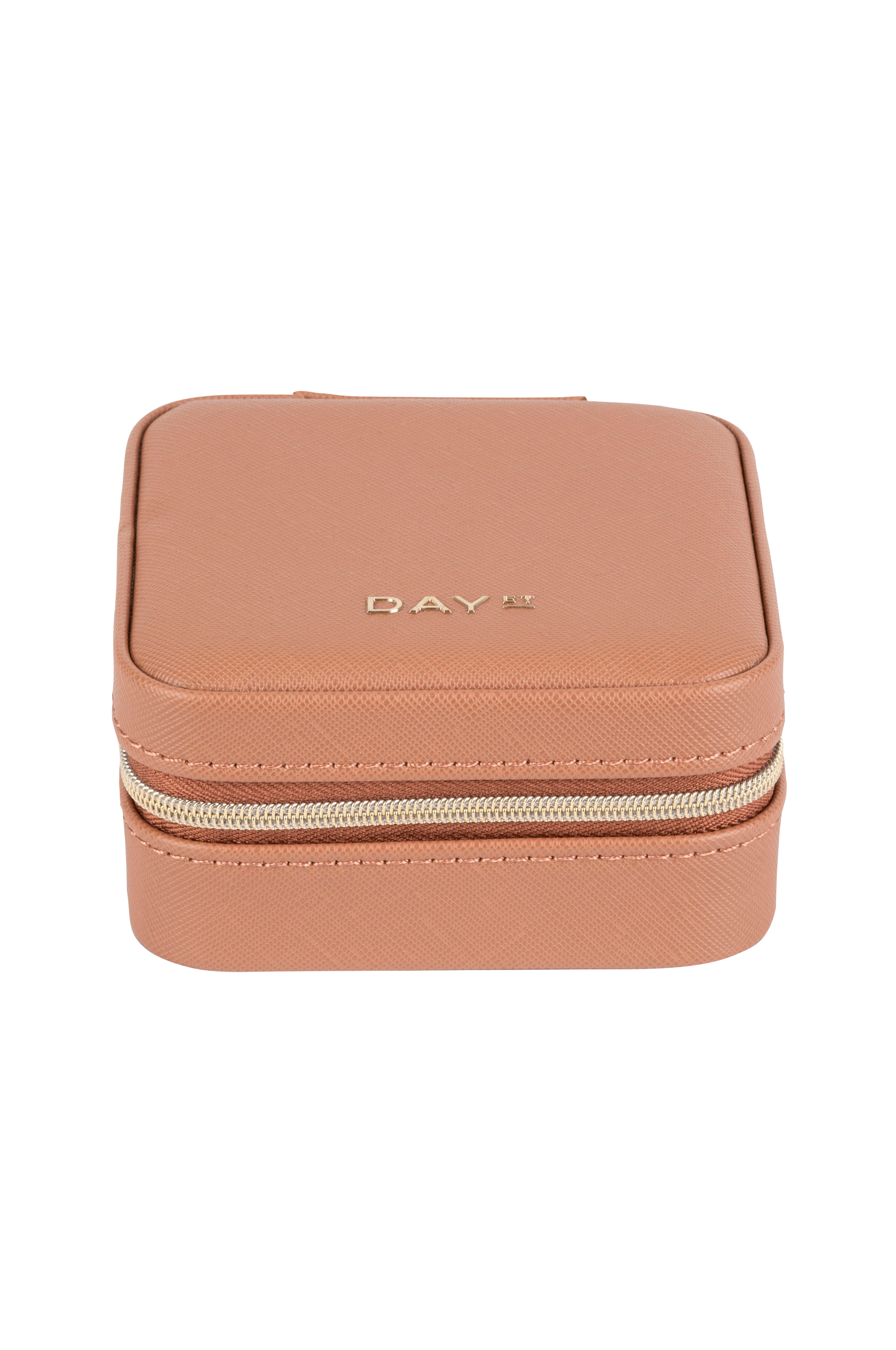 Et smykkeskrin designet i et læderlignende materiale med DAY ET logo på fronten, som giver et eksklusivt og stilrent look. Det har en enkel form og lukkes med lynlås. Indeni er der både mindre og større rum, som er perfekte til armbånd, ringe, halskæder, øreringe mv. B10 x H5 x D10 cm.