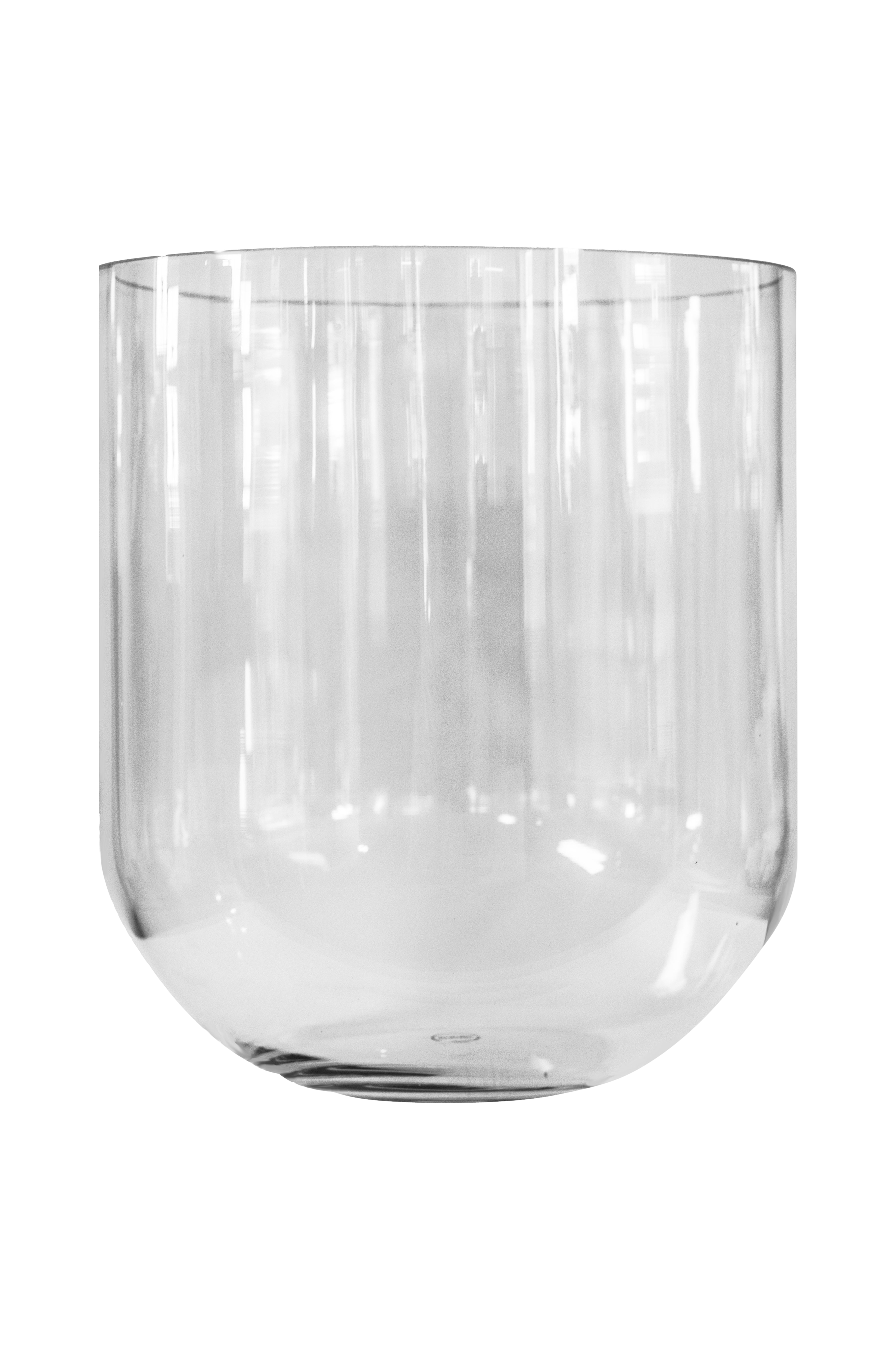 En vase af glas som let bliver blikfang. Højde 22 cm, diameter 19 cm.