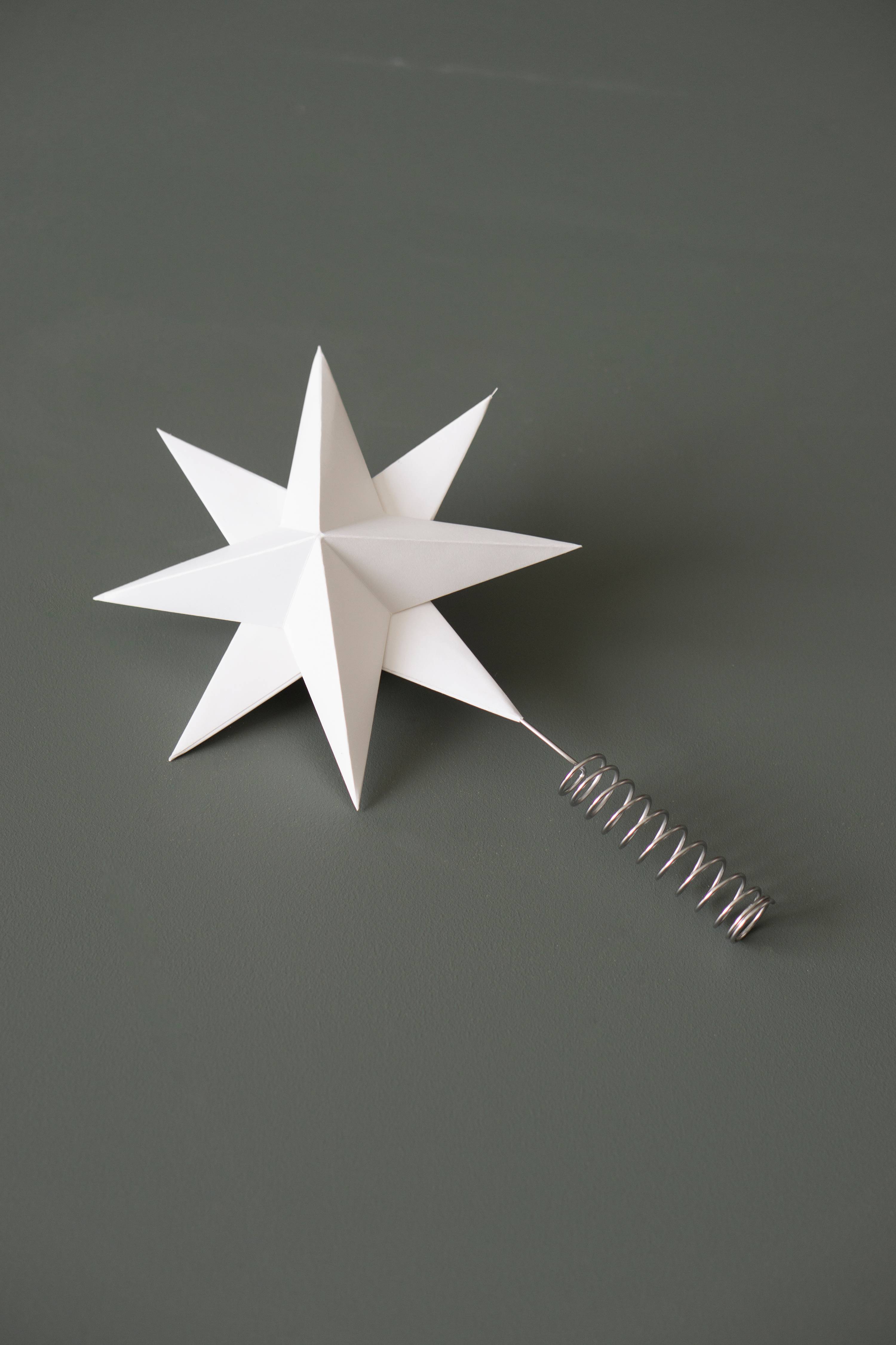 Håndlavet juletræstop af papir. Højde 35 cm, diameter 21 cm.