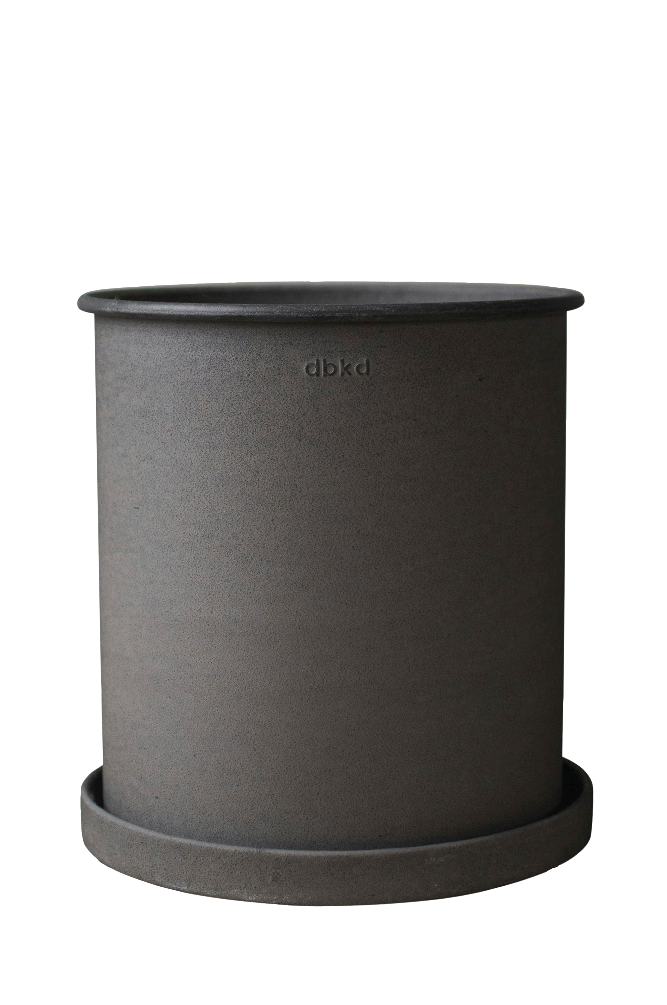 En udendørskrukke med tilhørende underskål, lavet af glaseret blik, så den kan stå ude året rundt. Drænhul i bunden, der forhindrer at krukken fyldes med vand. Dette hul kan lukkes med den medfølgende plastprop. Tåler frost. Kan anvendes indendørs og udendørs. Højde 30 cm, diameter 27 cm.