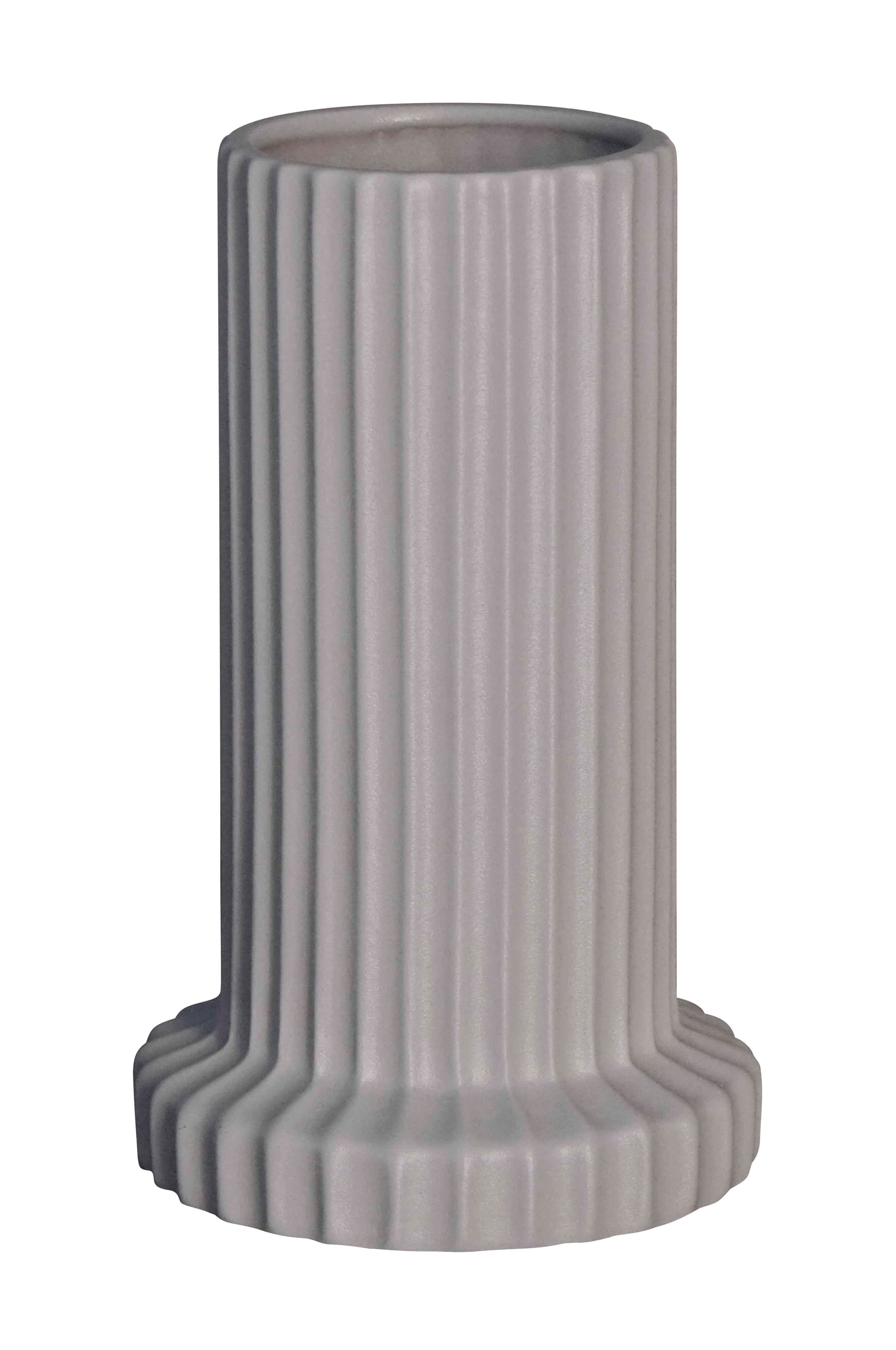 Vase i keramik med stribet overflade. Diameter 11 cm, højde 18 cm.