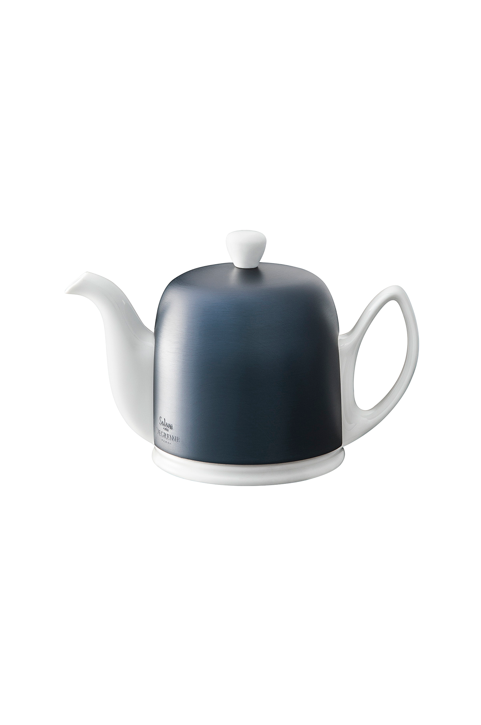 salam mineral teapot er fremstillet i hvidt porcelæn og har en cloche i børstet aluminium i en slående cobalt blå finish. Den lysende porcelænskrop står i smuk kontrast til den dybe metalliske tone og skaber et moderne og elegant look. Den leveres med et aftageligt infusionsrør, der giver tebladene mulighed for at frigive deres aromaer fuldt ud, samtidig med at det forhindrer bitterhed fra overtrækning.