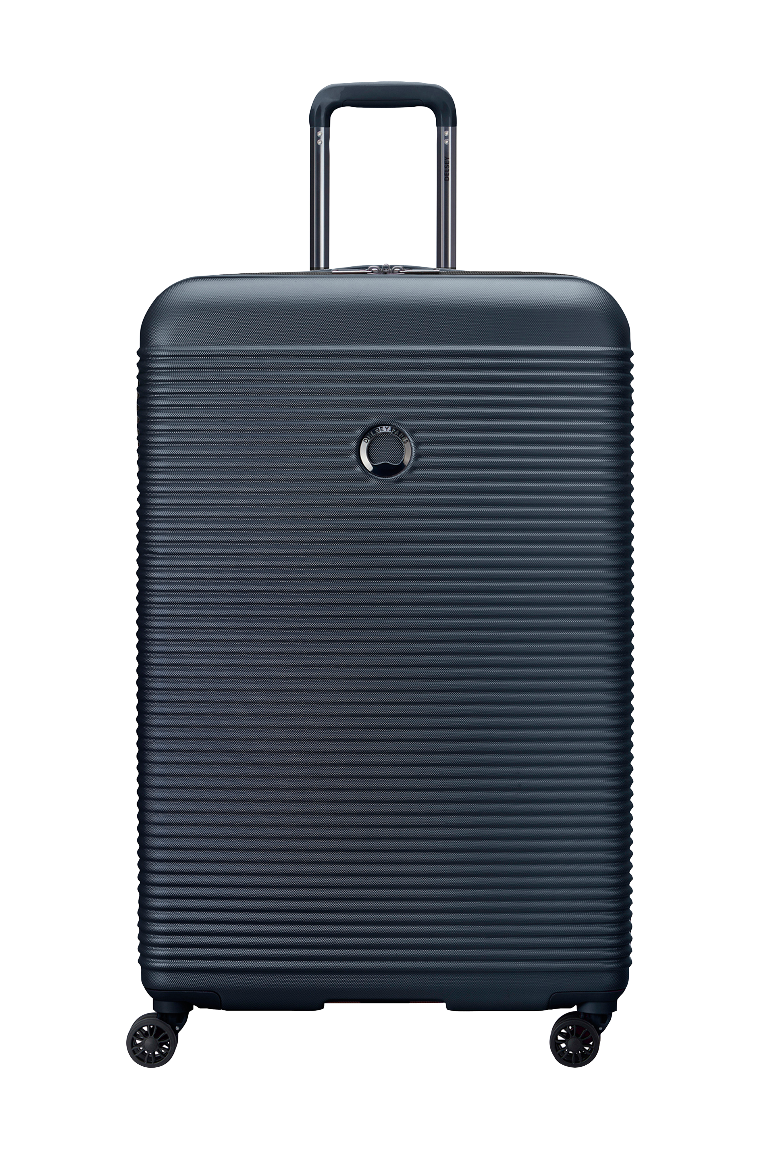 Teleskophåndtag i flere positioner og udstyret med fire helt lydløse, tovejs dobbelthjul, der ruller meget let.