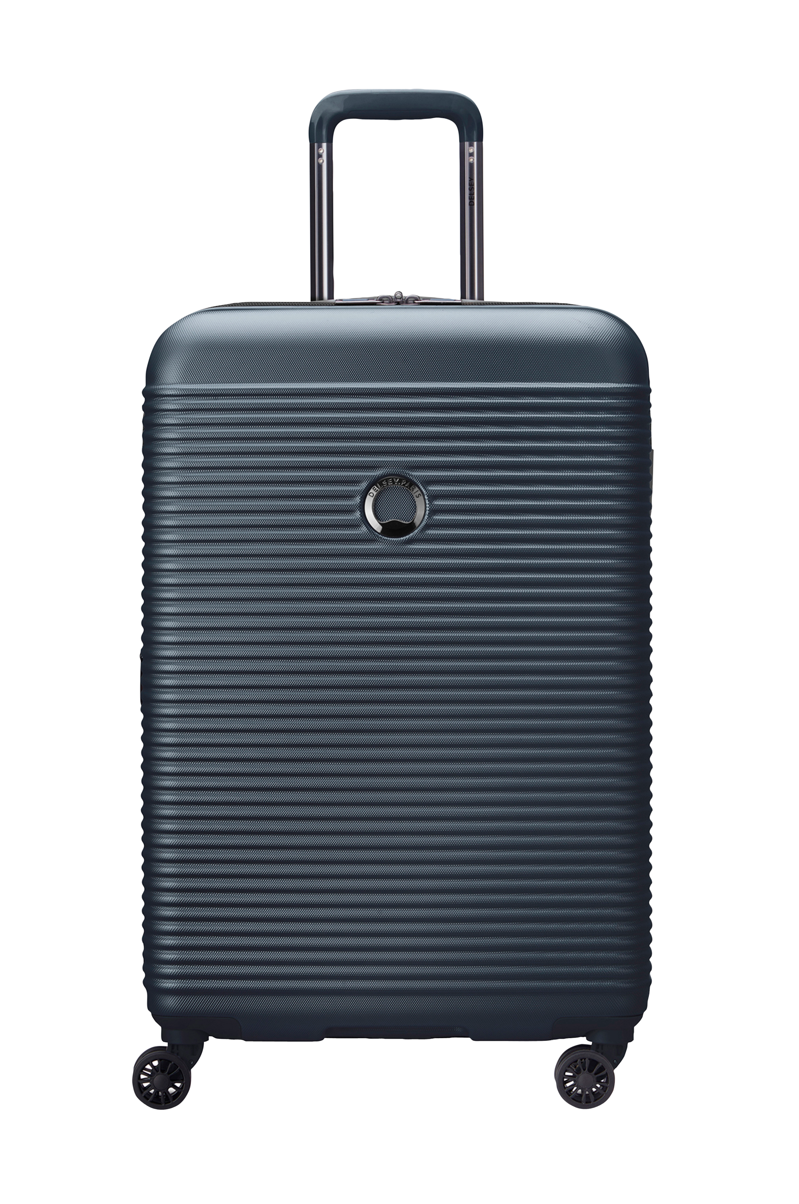Teleskophåndtag i flere positioner og udstyret med fire helt lydløse, tovejs dobbelthjul, der ruller meget let.