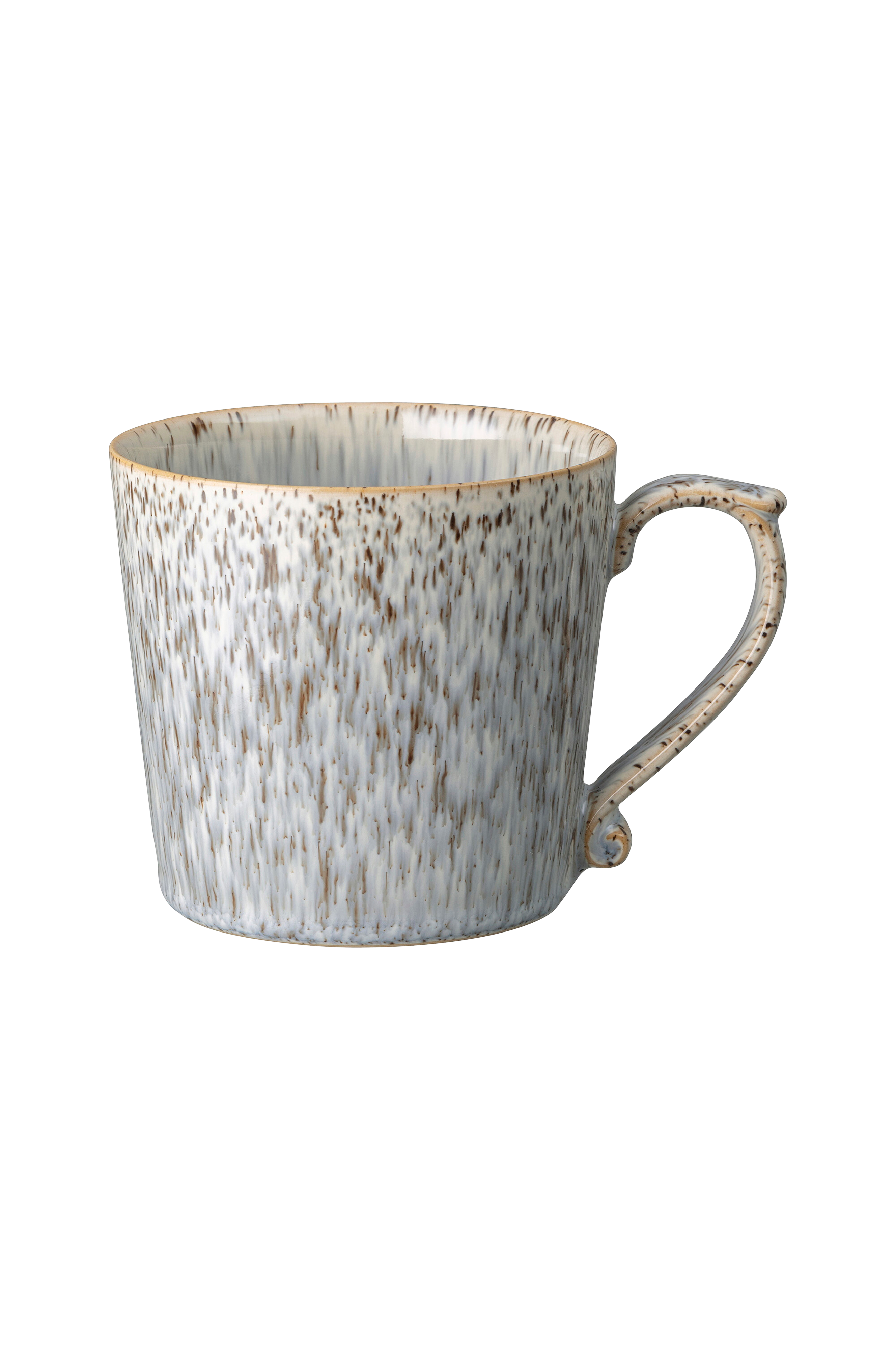 Krus i serien Halo fra Denby. Håndlavet i ægte Derbyshire ler og glaseret i to kontrasttoner, hvilket giver det en unik, marmoreret finish. Et stort og dejligt krus, der giver et ekstra pift til din morgenkaffe og gør aftenens te-tid lidt hyggeligere. Kombiner med yderligere dele fra Halo-serien for at skabe dit eget drømmeservice! Alle dele kan bruges i ovn, mikroovn, opvaskemaskine og fryser.