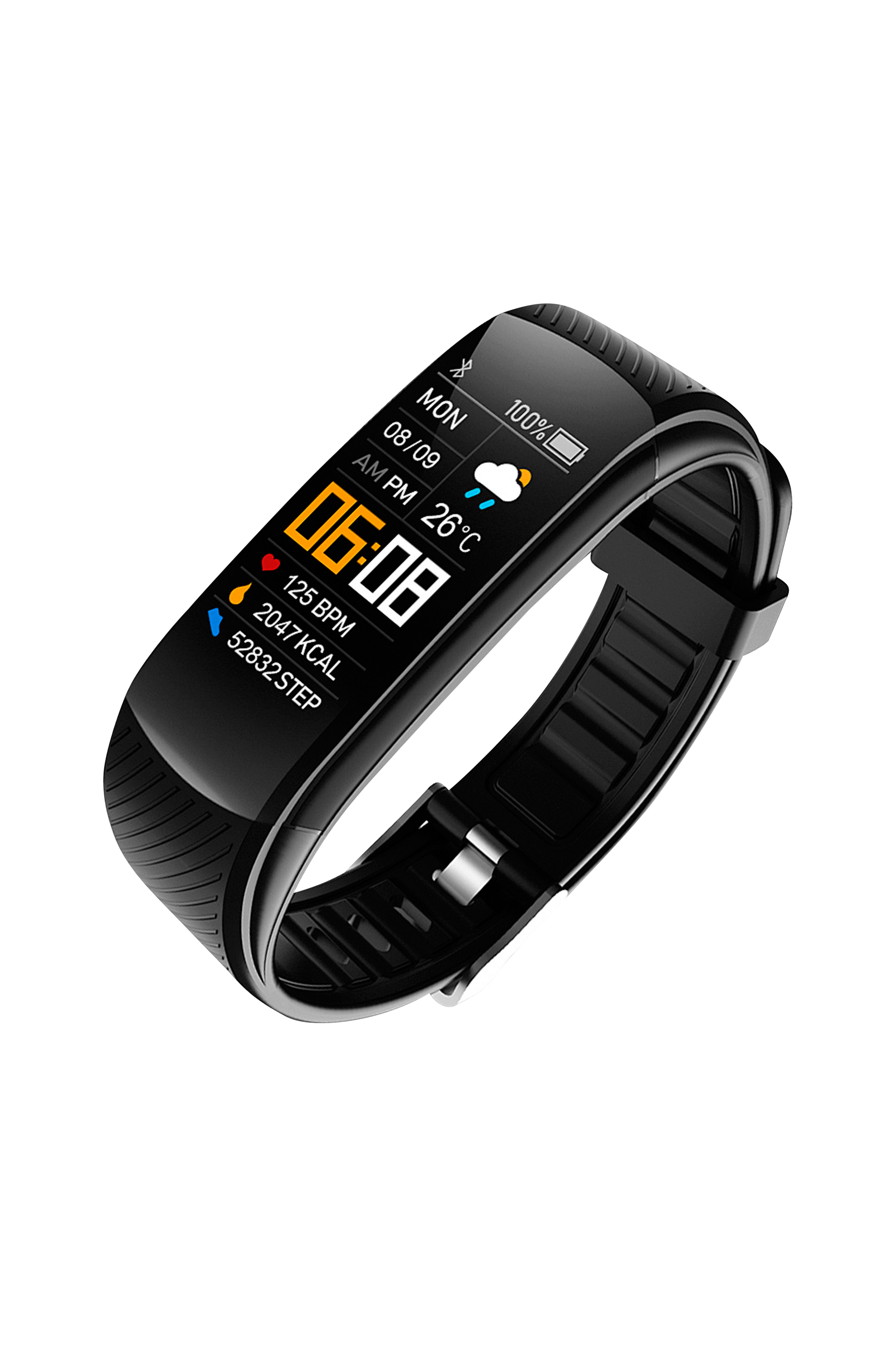 0,96 '' farveskærm, der viser puls og blodtrykssensor (ikke medicinsk kvalitet), inklusive iltmonitor i blodet.