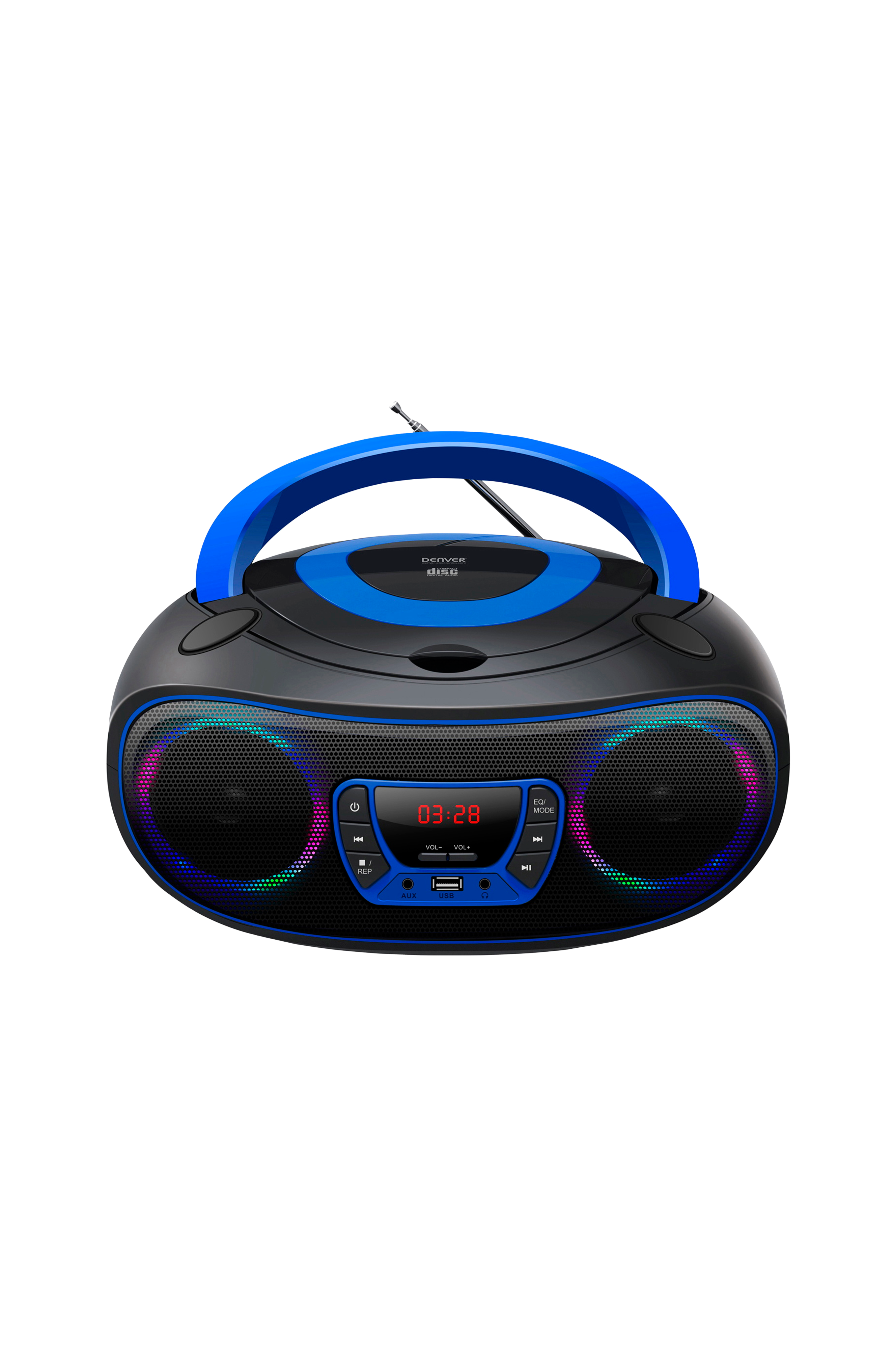 CD-boombox med FM-radio og Bluetooth- USB-indgang til MP3-afspilning- AUX-indgang- Stik til hovedtelefoner- Bluetooth-funktion- Metalhøjttalere med LED-lys- 2 x 2W udgangseffekt.