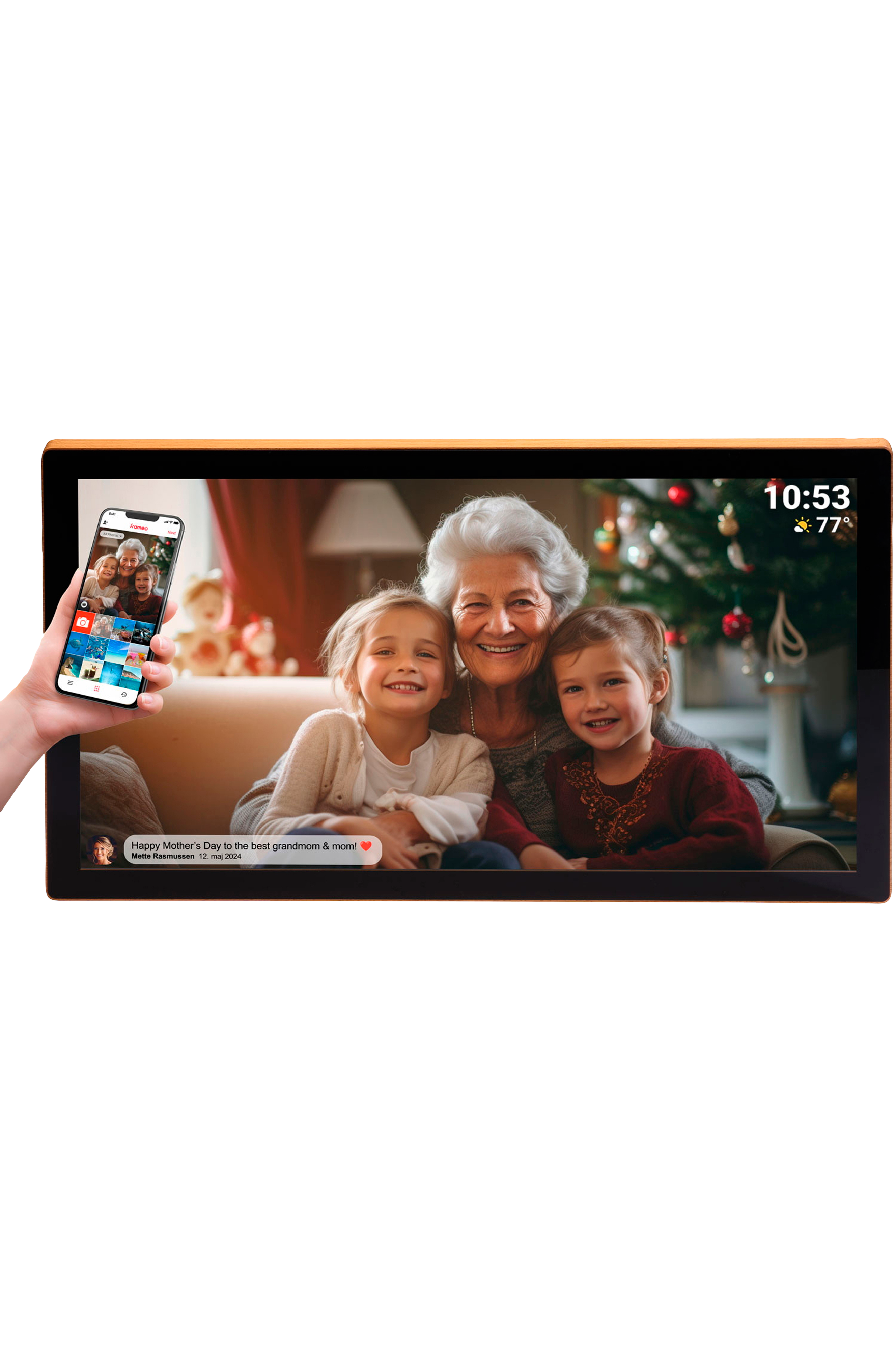 Smart 31,5" Wi-Fi-fotoramme med FULL HD IPS-berøringsskærm og 32 GB flashlager (eMMC).