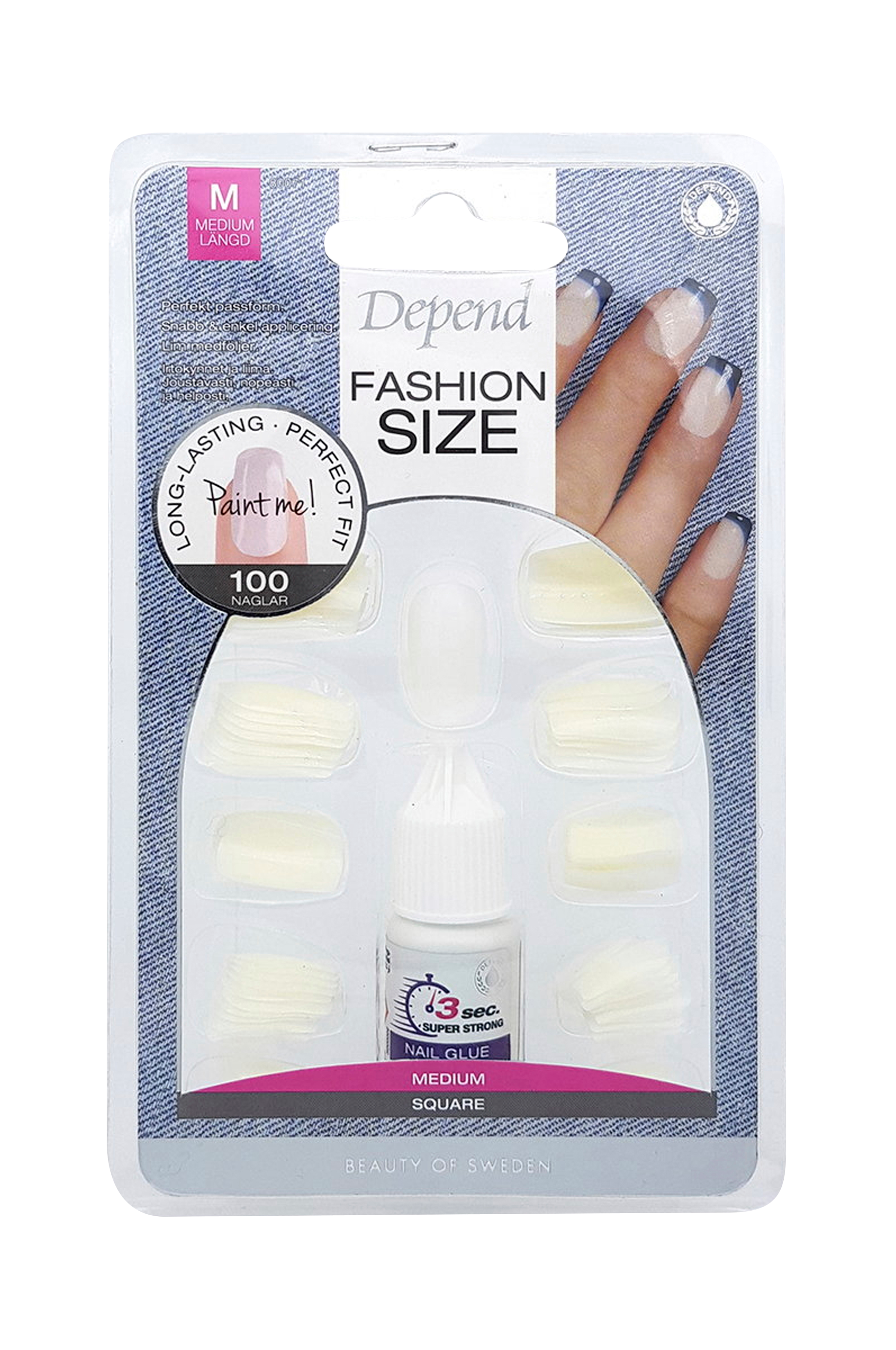 Fleksible kunstige negle med perfekt pasform i 100-pak. Nemme at påføre med medfølgende lim.