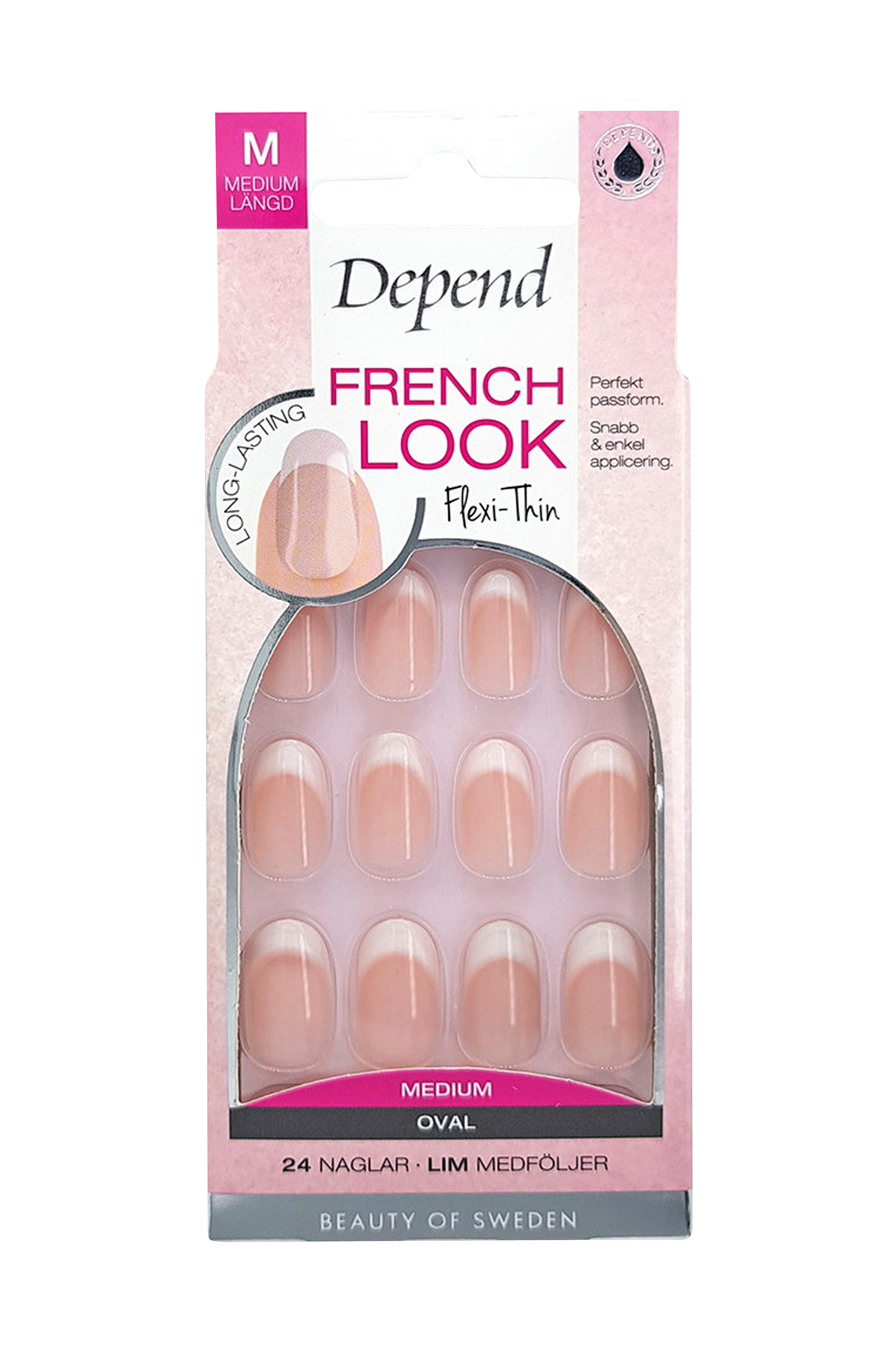 Kunstige negle for en perfekt fransk manicure på få minutter. Flexi-Thin giver den ultimative pasform, er nem at påføre og har en højglans overflade, der hverken flager eller mister farve.Lim medfølger.