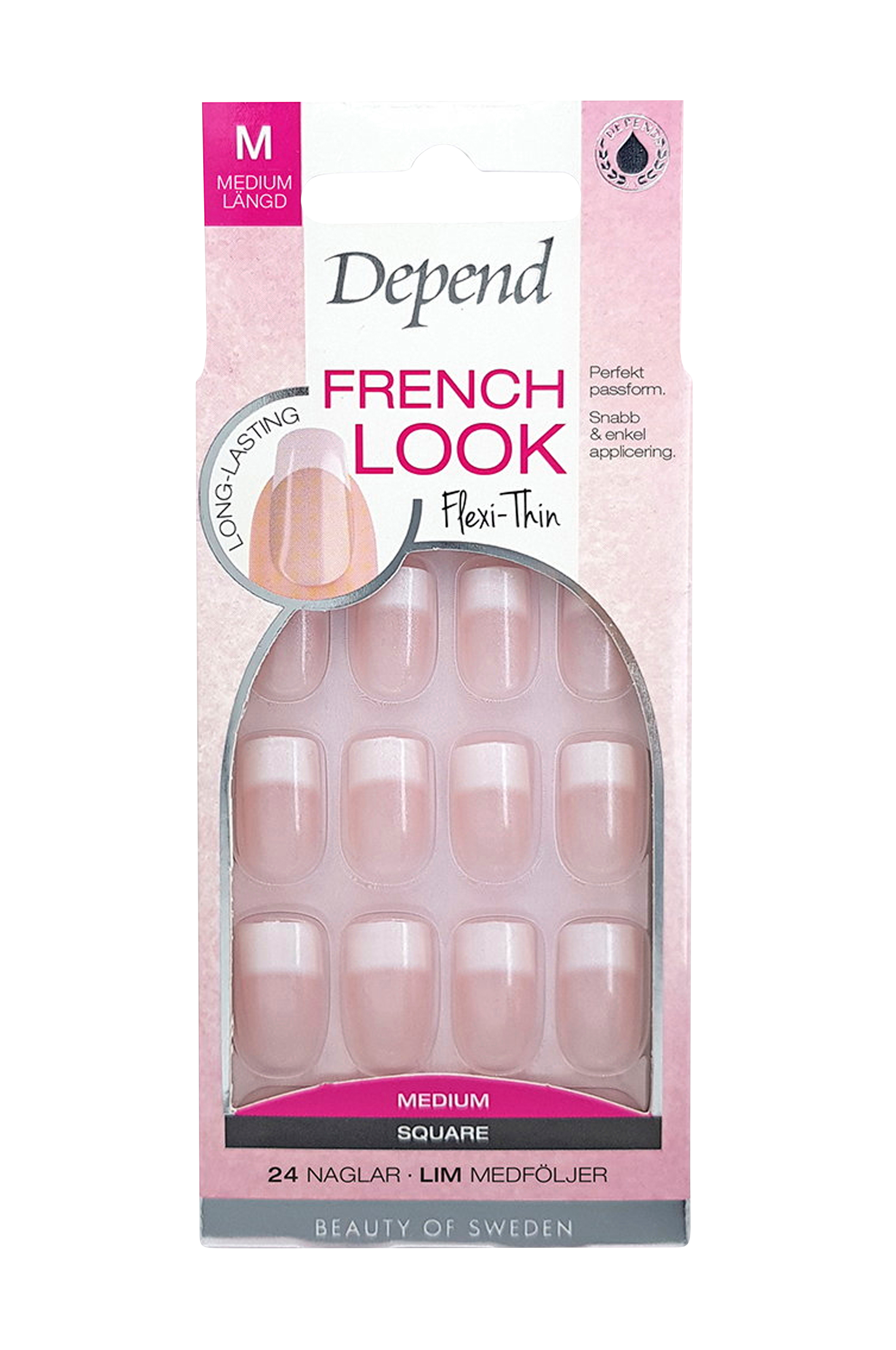 Kunstige negle for en perfekt fransk manicure på få minutter. Flexi-Thin giver den ultimative pasform, er nem at påføre og har en højglans overflade, der hverken flager eller mister farve.Lim medfølger.