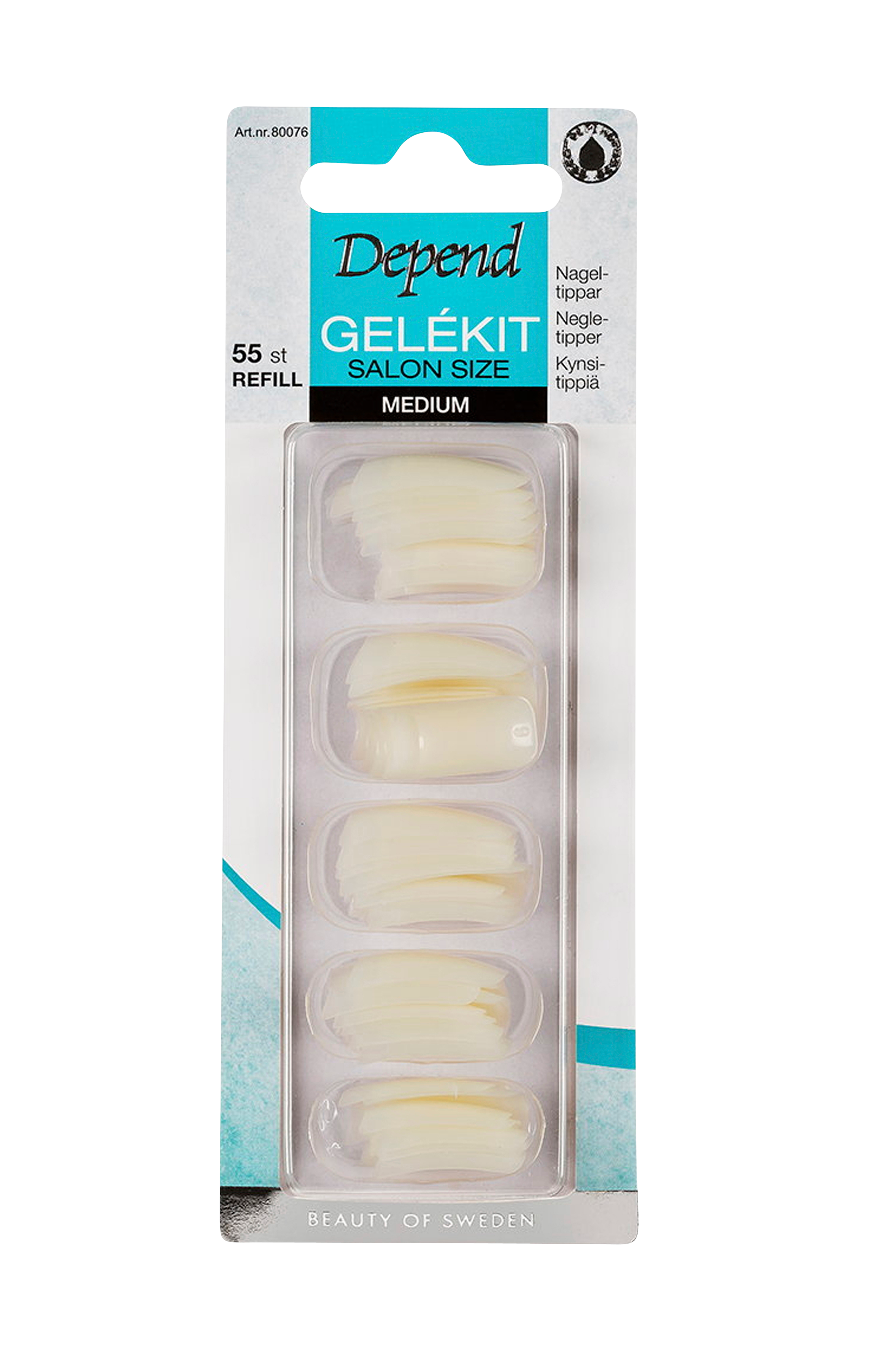 55 fleksible spidser med ekstra bred fastgørelsesflade og perfekt pasform. Refill til Gelekit Salon Size.