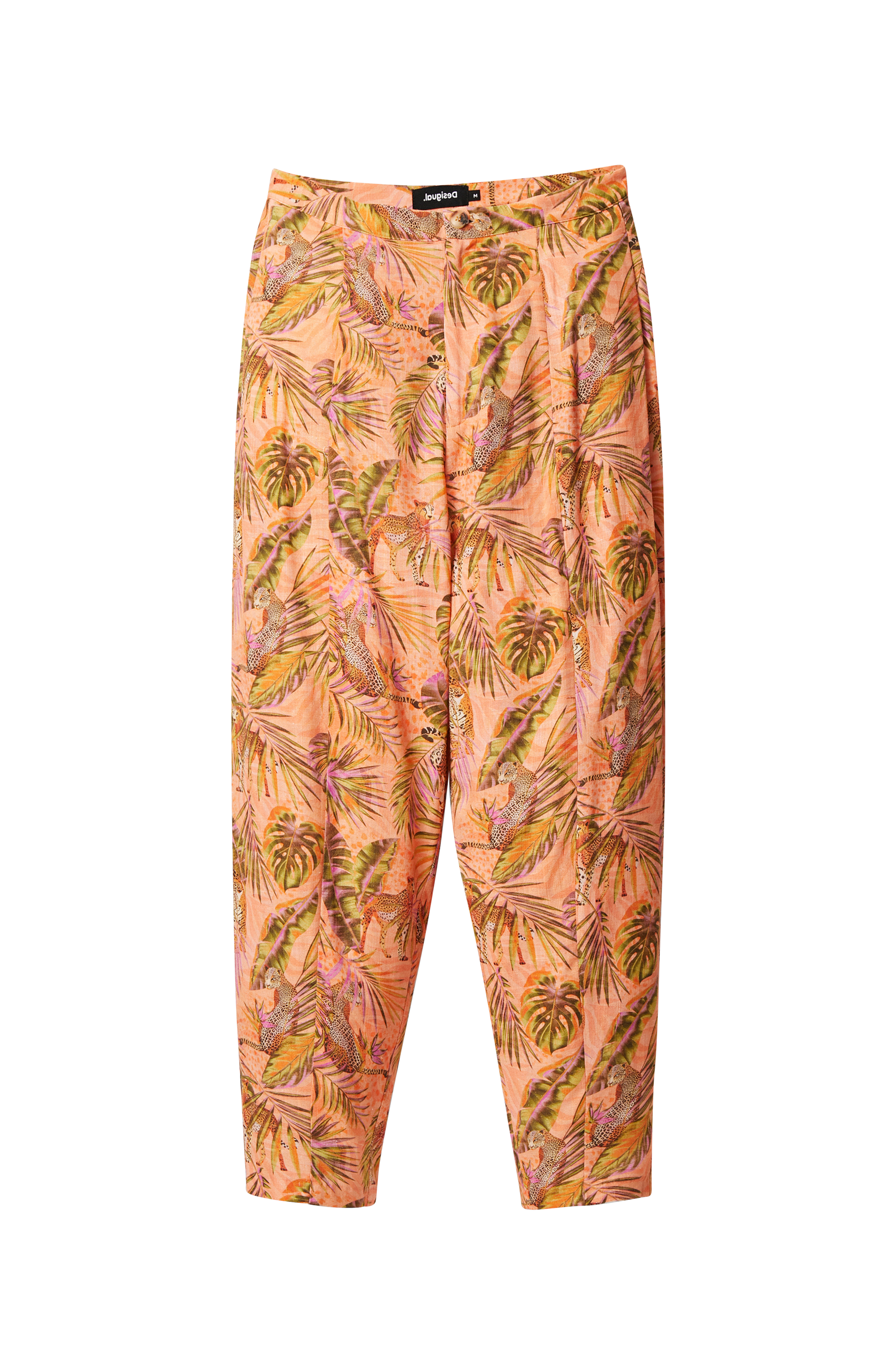 • Bukser i hørblanding• Printet mønster• Indsnævrende ben• Knaplukning• Gylp med lynlås• Sidelommer• Snydelommer bagpå