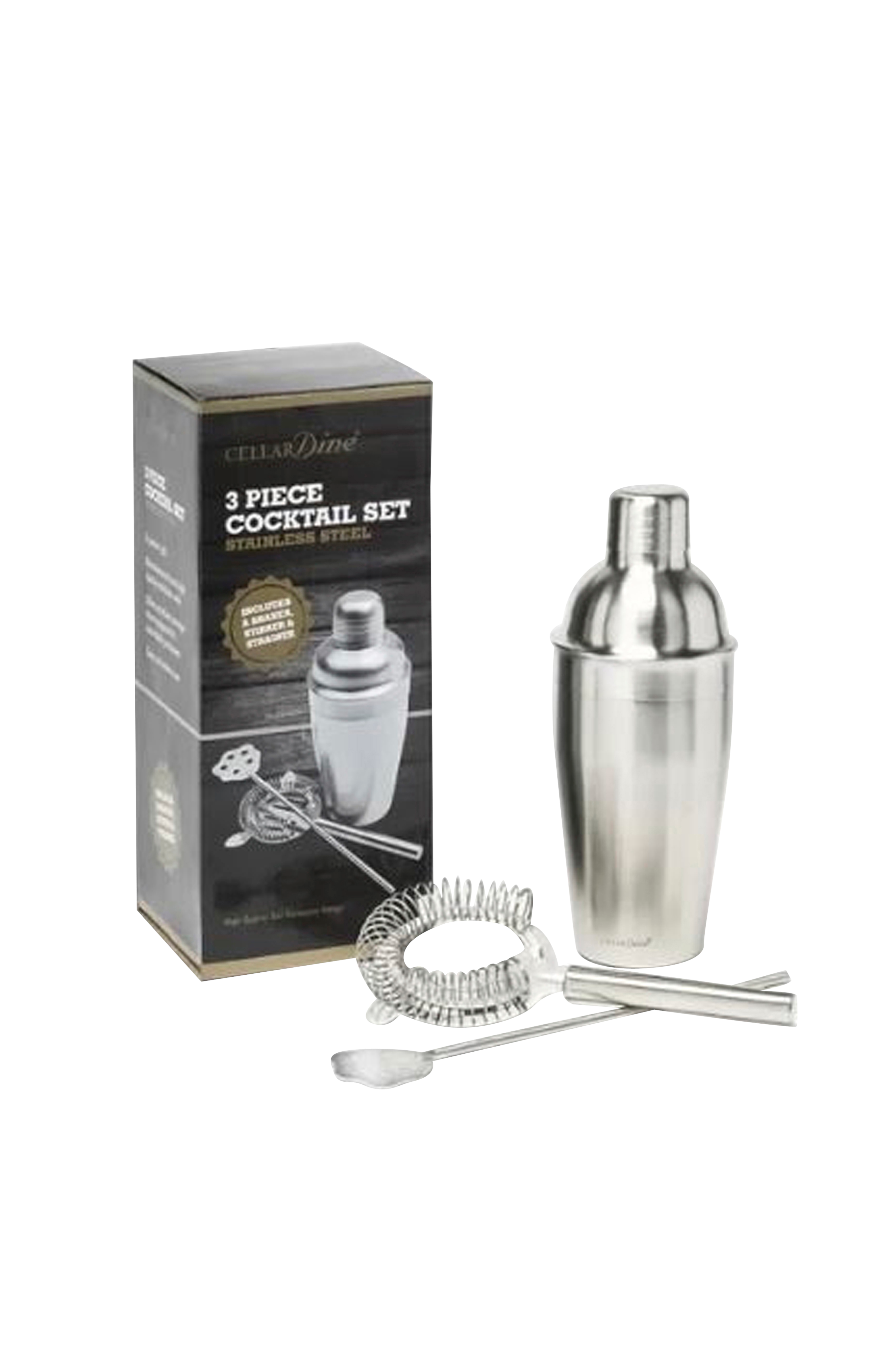 Et fantastisk tredelt cocktailsæt bestående af: 500 ml traditionel cocktailshaker i 18/10 rustfrit stål, omrører og si.