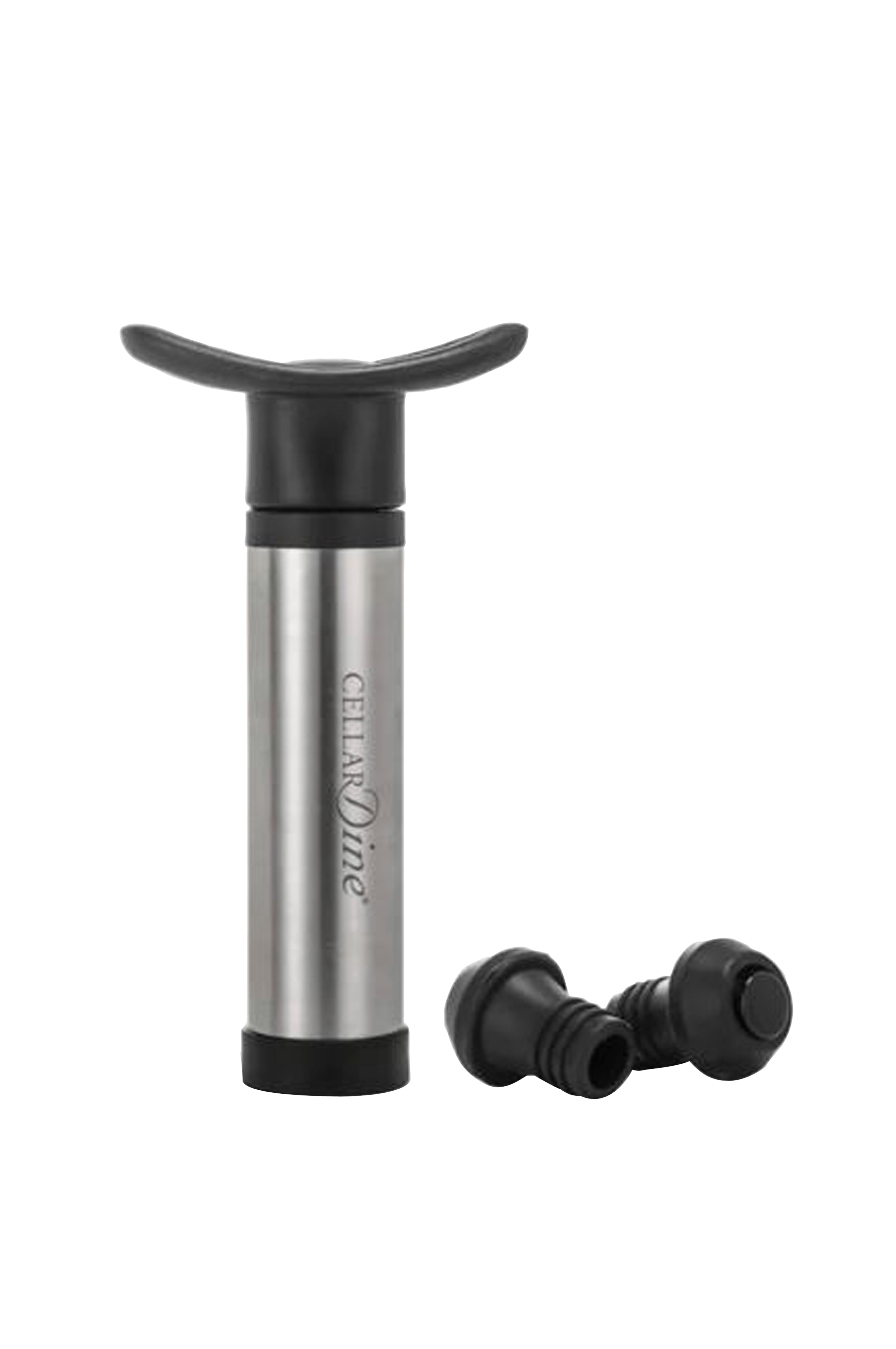 cellardine vacuum wine saver er sikker og nem at bruge, udviklet til at holde vinen frisk til sidste dråbe. kan bruges til alle røde og hvide stille vinekommer færdigpakket med en pumpe og to propperfungerer på alle 750 ml flasker og vine med flangehalsbevarer vinens friskhed i højst 7 dage