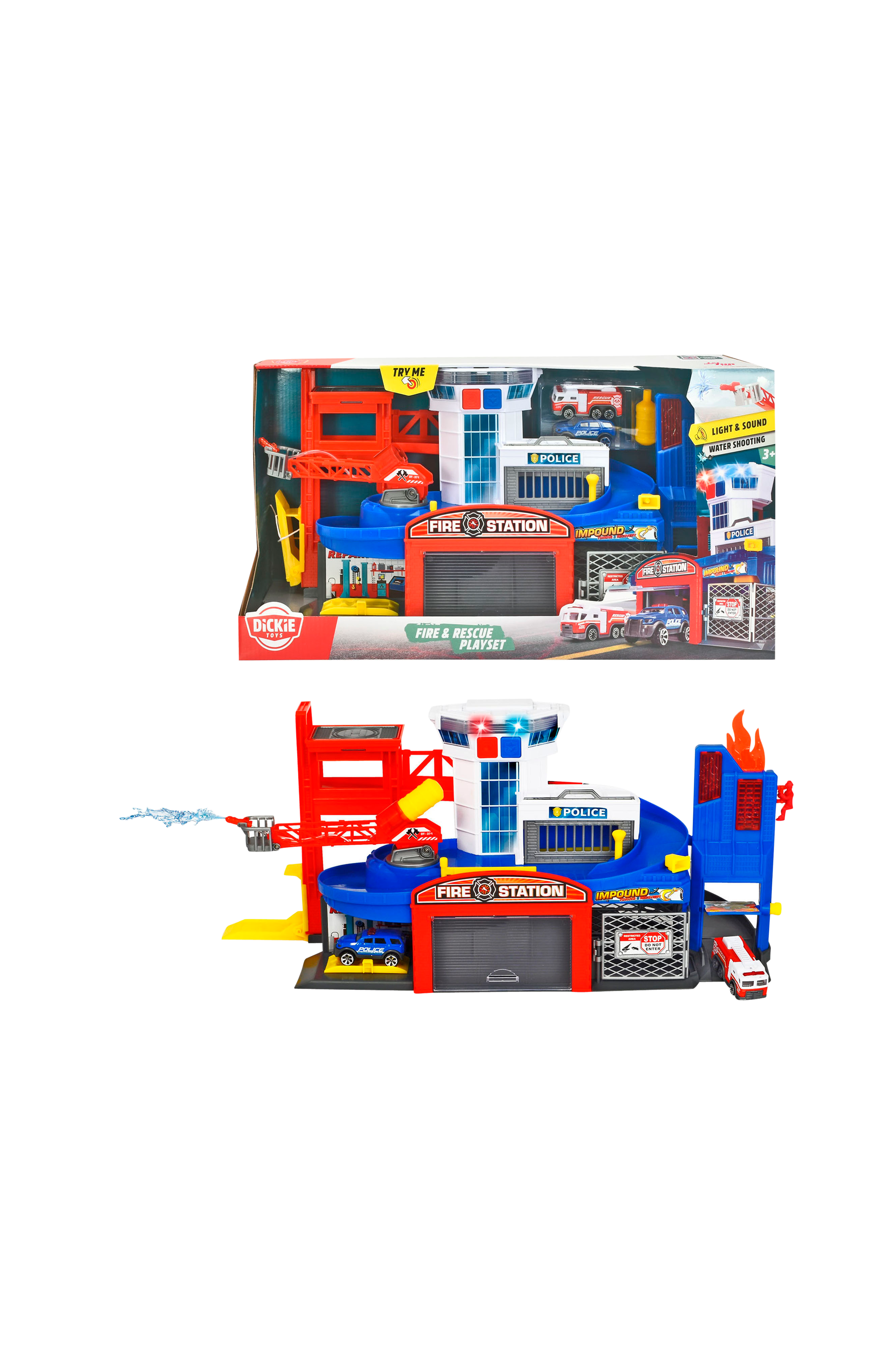 Med lyd og lys, drejelig stige med vandsprayfunktion, pop-up flammer, oplukkelige dele og manuel lift inklusive 2 metalbiler.