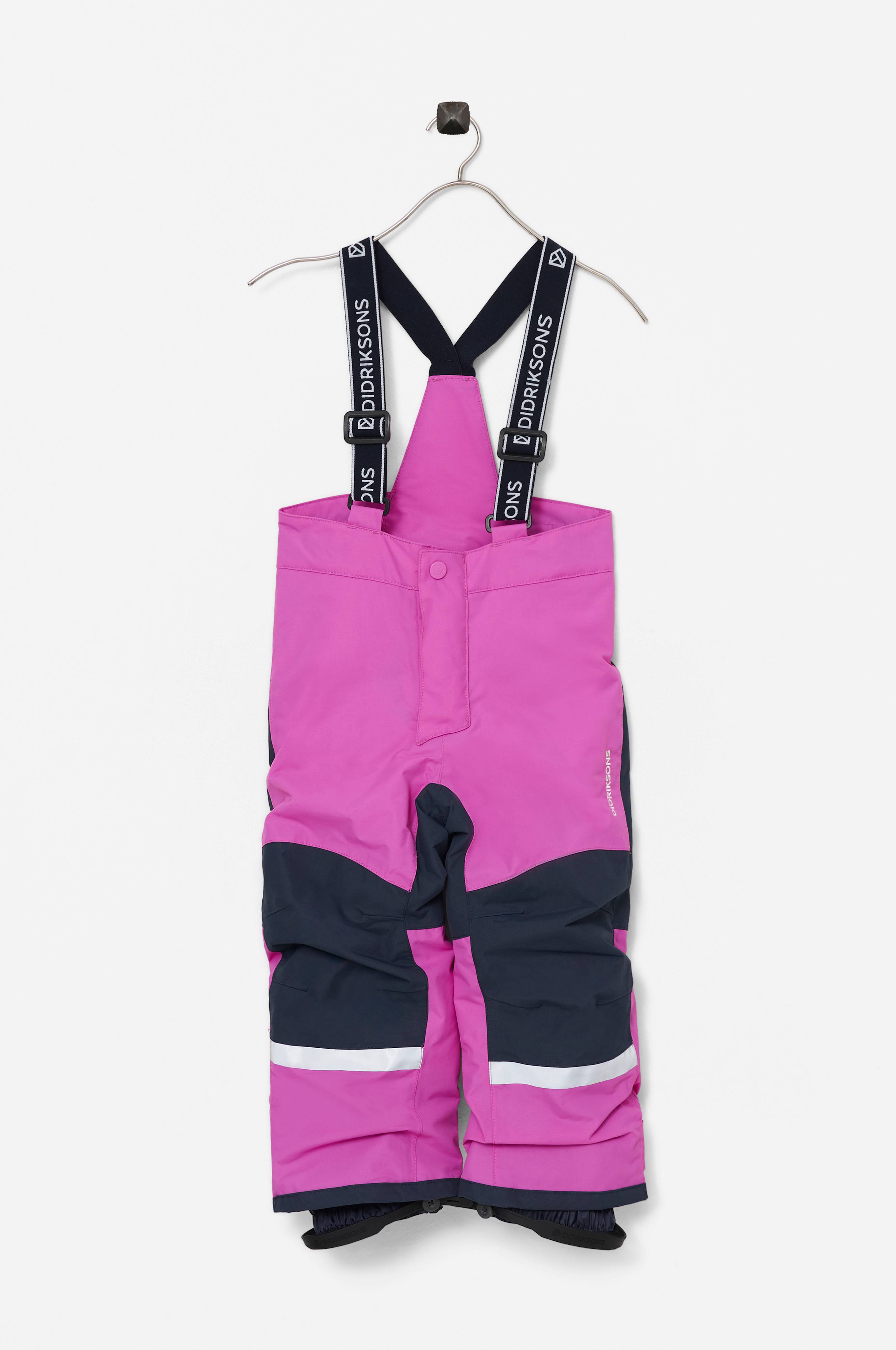 Justerbare, faste seler og regulerbar, høj talje med trykknap. Gylp med lynlås og velcrolukning. Snefang i benkanten. Regulerbare benkanter og justerbare, elastiske fodstropper. Refleksdetaljer. Vandafvisningen er PFC-fri.