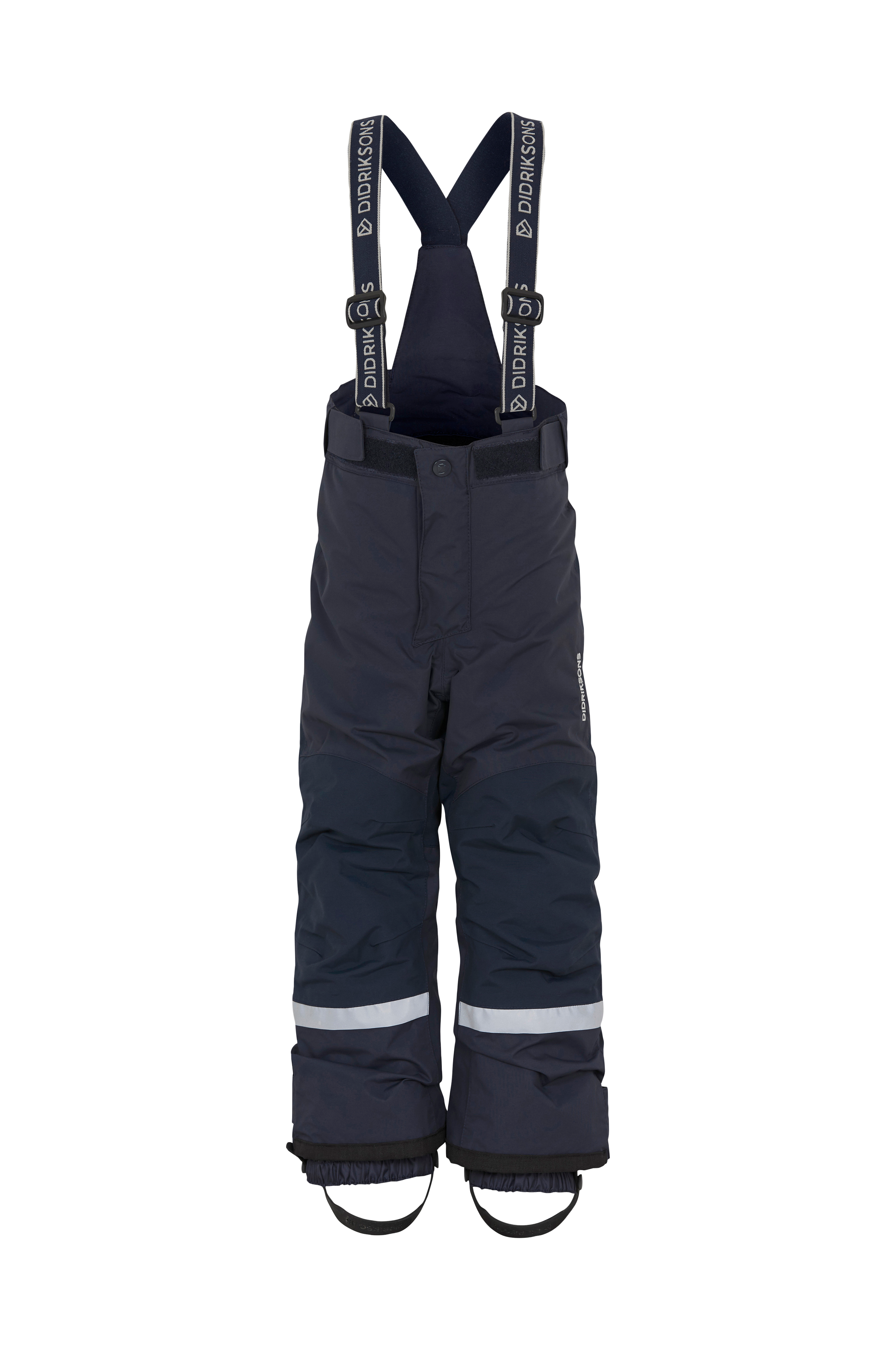 Justerbare, faste seler og regulerbar, høj talje med trykknap. Gylp med lynlås og velcrolukning. Snefang i benkanten. Regulerbare benkanter og justerbare, elastiske fodstropper. Refleksdetaljer. Vandafvisningen er PFC-fri.