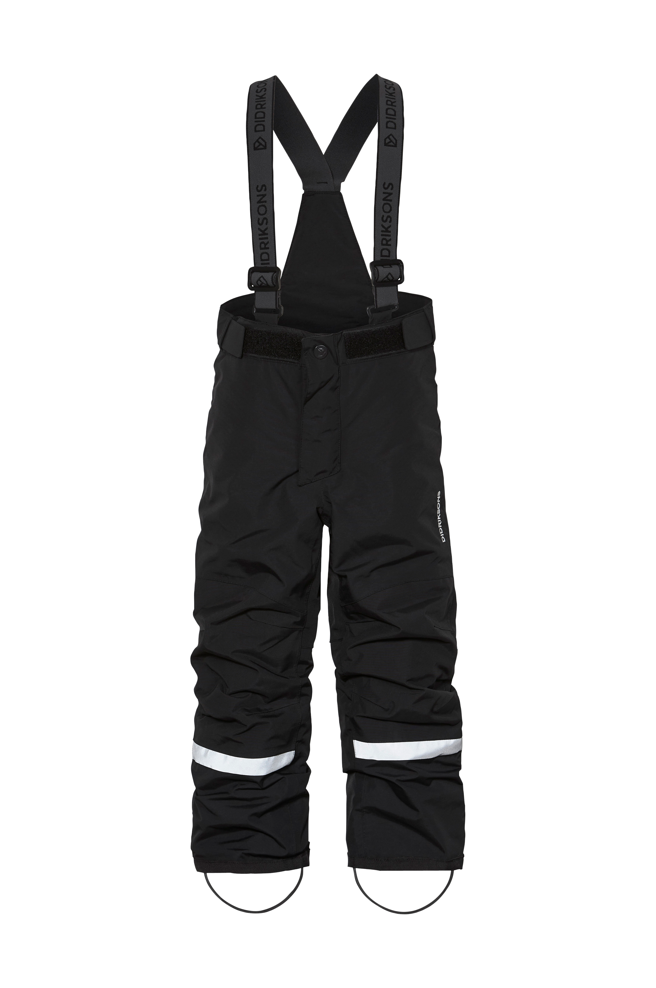 Justerbare, faste seler og regulerbar, høj talje med trykknap. Gylp med lynlås og velcrolukning. Snefang i benkanten. Regulerbare benkanter og justerbare, elastiske fodstropper. Refleksdetaljer. Vandafvisningen er PFC-fri.