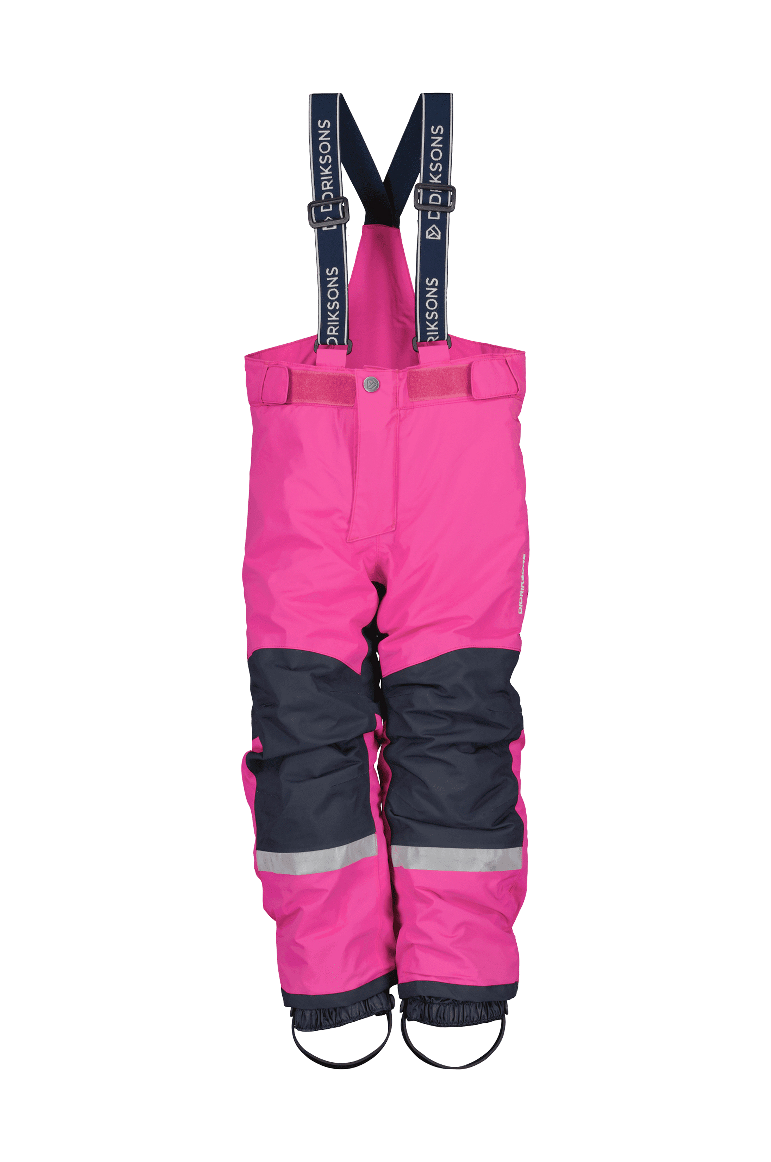 Justerbare, faste seler og regulerbar, høj talje med trykknap. Gylp med lynlås og velcrolukning. Snefang i benkanten. Regulerbare benkanter og justerbare, elastiske fodstropper. Refleksdetaljer. Vandafvisningen er PFC-fri.