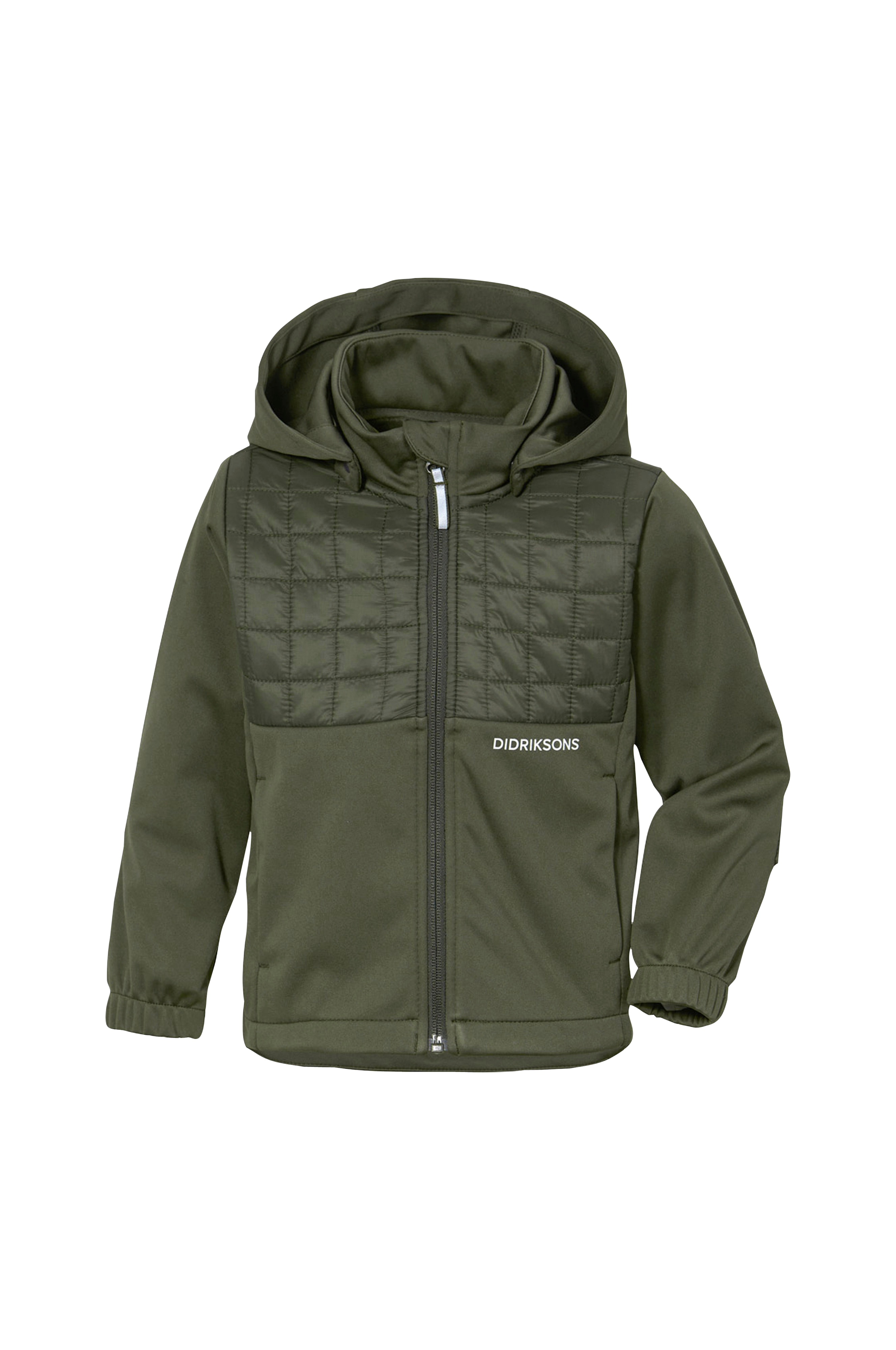 En vandafvisende hybridjakke med vatterede partier på brystet og bagpå med partier i blød powerstretch. Fremstillet af ripstop-stof i polyester og teknisk fleece. Aftagelig hætte, lynlås og to lommer med lynlås. Ærmekant i elastik. Refleksdetaljer. PFC-fri vandafvisning.