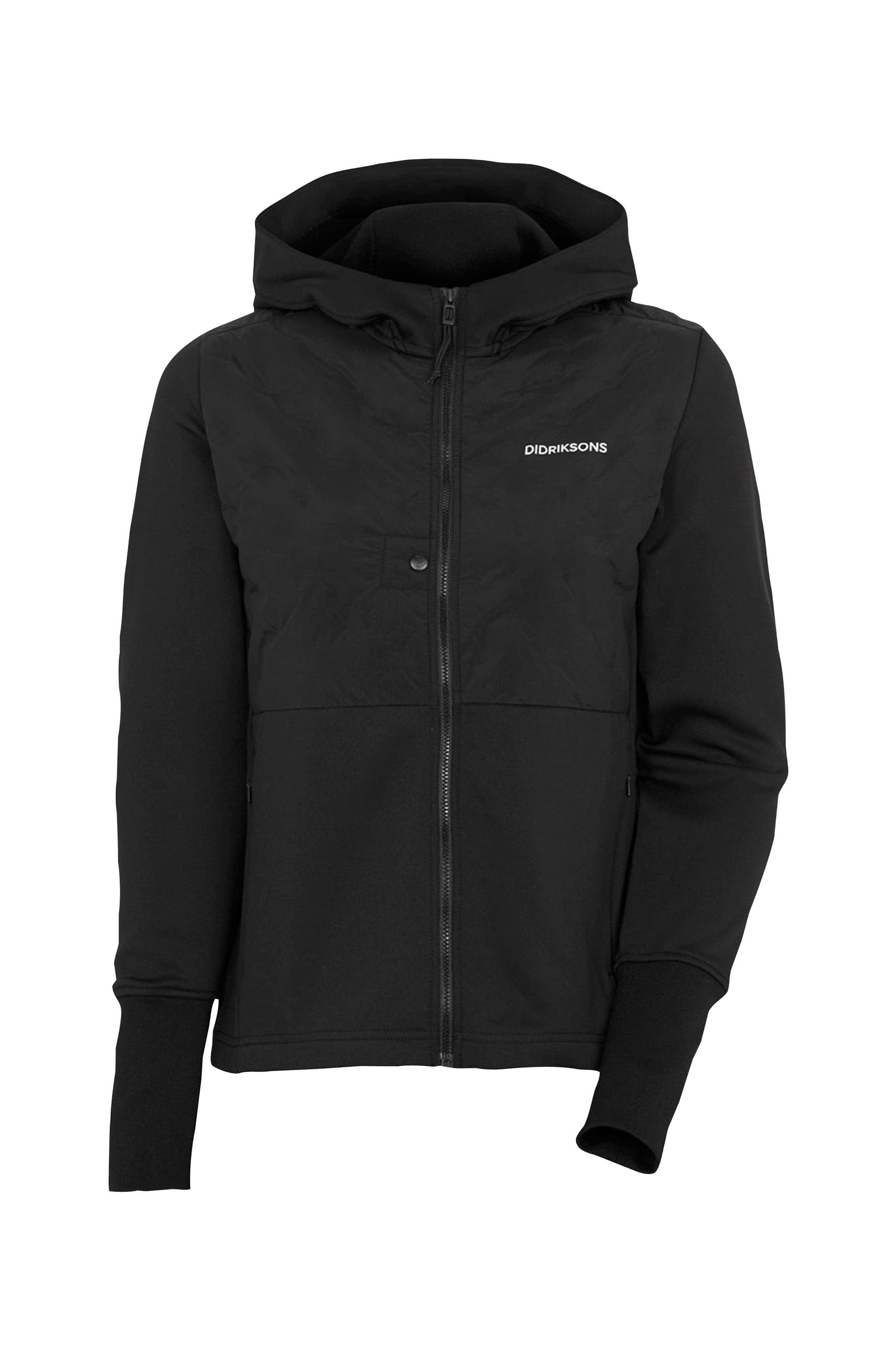 En hybridjakke der både kan bruges som jakke og et ekstra lag. Jakken er quiltet og let vatteret over brystet og overdelen af ryggen. Stretchfleece i polyester. Hætte, lynlås og to lommer med lynlås. Bred ribkant i ærmekant. Længde ca. xx cm i str. 36.