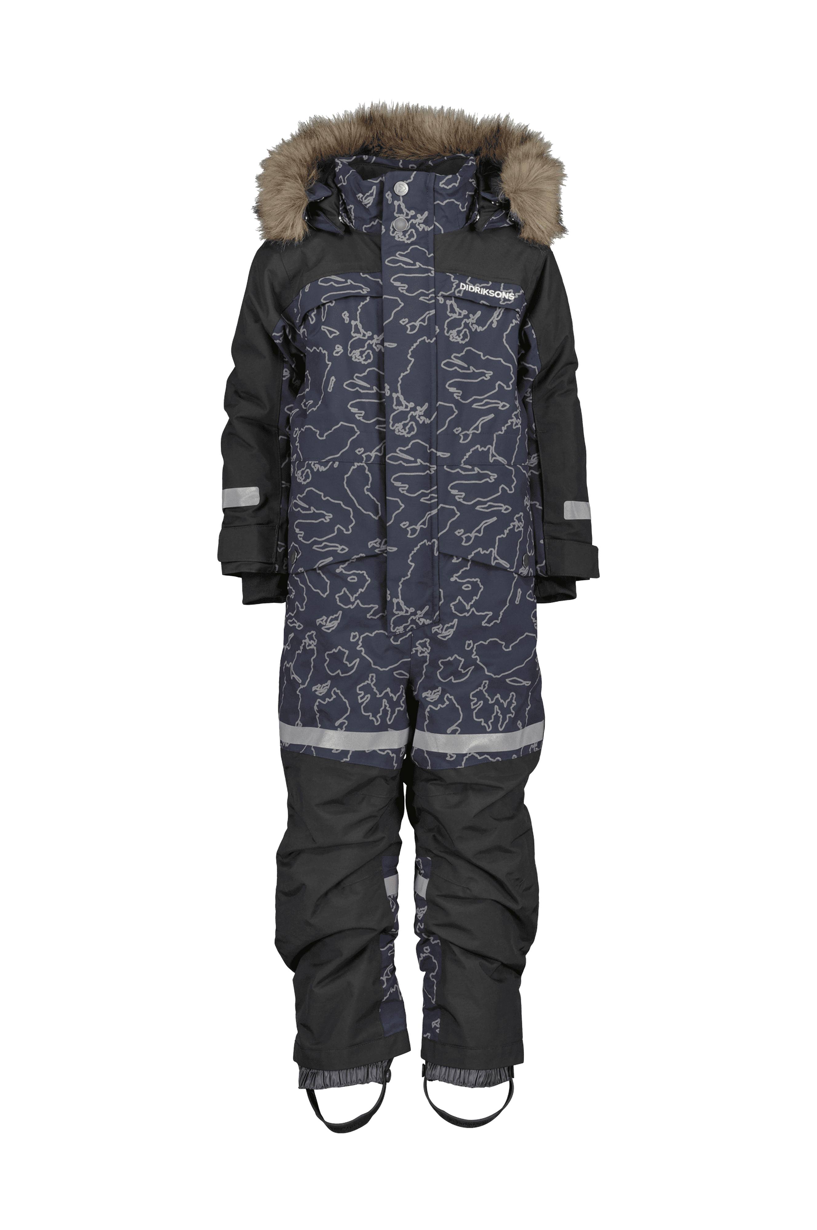 • Aftagelig, justérbar hætte med aftagelig imiteret pelskant • Lynlås • Dobbelt vindflap med velcrolukning • Justérbar talje • Justérbar vidde ved manchetterne og ved enden af benene • Ribmanchetter ved manchetterne med tommelfingerhuller • To lommer med trykknapslukning • Liftkortslomme på den venstre arm med velcrolukning • Sneskørt ved enden af benene • Aftagelige, elastiske fodstropper i silikone • Reflekterende detaljer • Indvendige skulderstropper holder overalls på plads • Vandsøjle: 10 000 mm • Åndbarhed: 4000 g/m2/24h • Med "Extend Size"-funktionen kan tøjet forlænges med op til en størrelse.