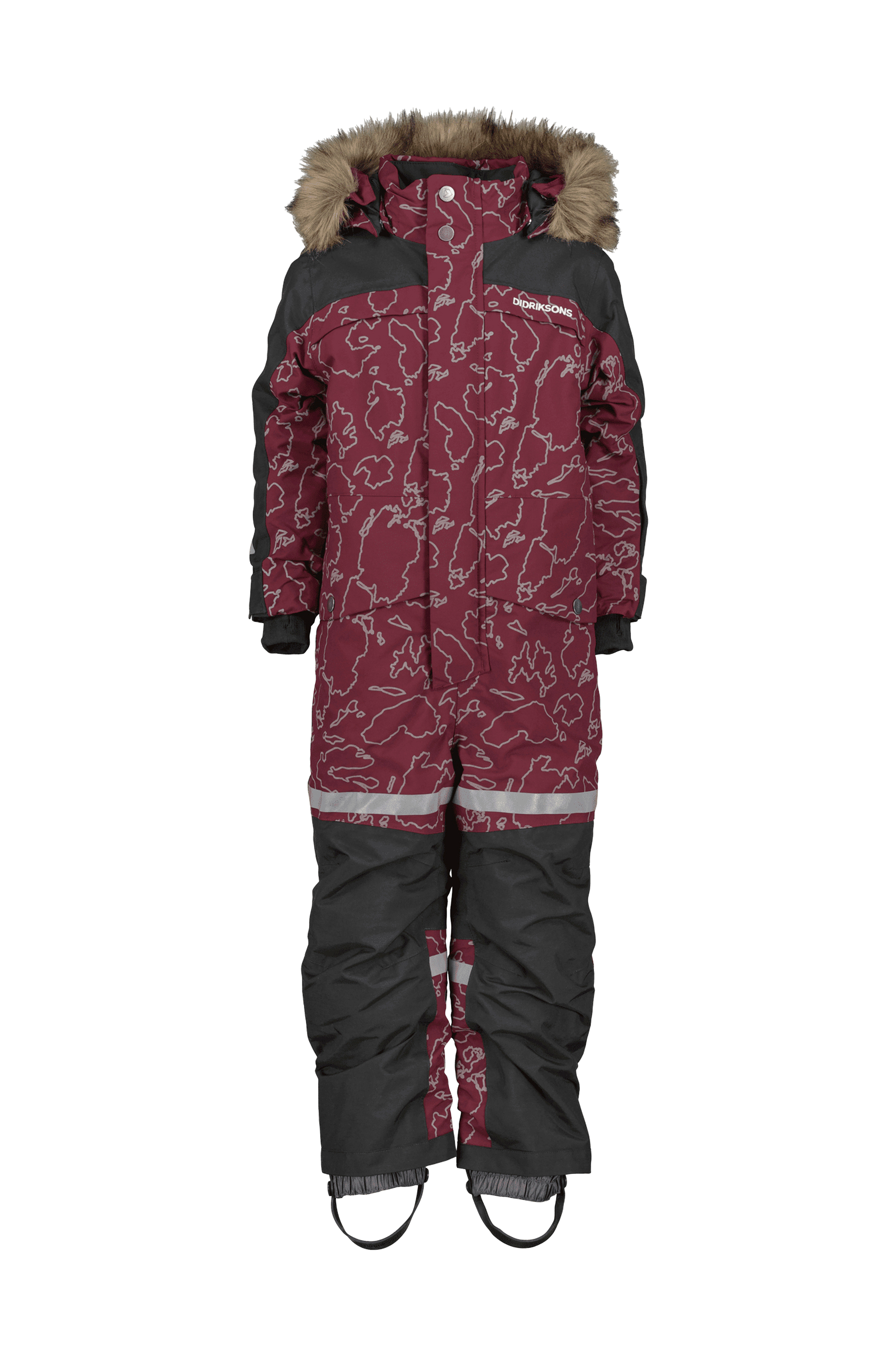 • Aftagelig, justérbar hætte med aftagelig imiteret pelskant • Lynlås • Dobbelt vindflap med velcrolukning • Justérbar talje • Justérbar vidde ved manchetterne og ved enden af benene • Ribmanchetter ved manchetterne med tommelfingerhuller • To lommer med trykknapslukning • Liftkortslomme på den venstre arm med velcrolukning • Sneskørt ved enden af benene • Aftagelige, elastiske fodstropper i silikone • Reflekterende detaljer • Indvendige skulderstropper holder overalls på plads • Vandsøjle: 10 000 mm • Åndbarhed: 4000 g/m2/24h • Med "Extend Size"-funktionen kan tøjet forlænges med op til en størrelse.