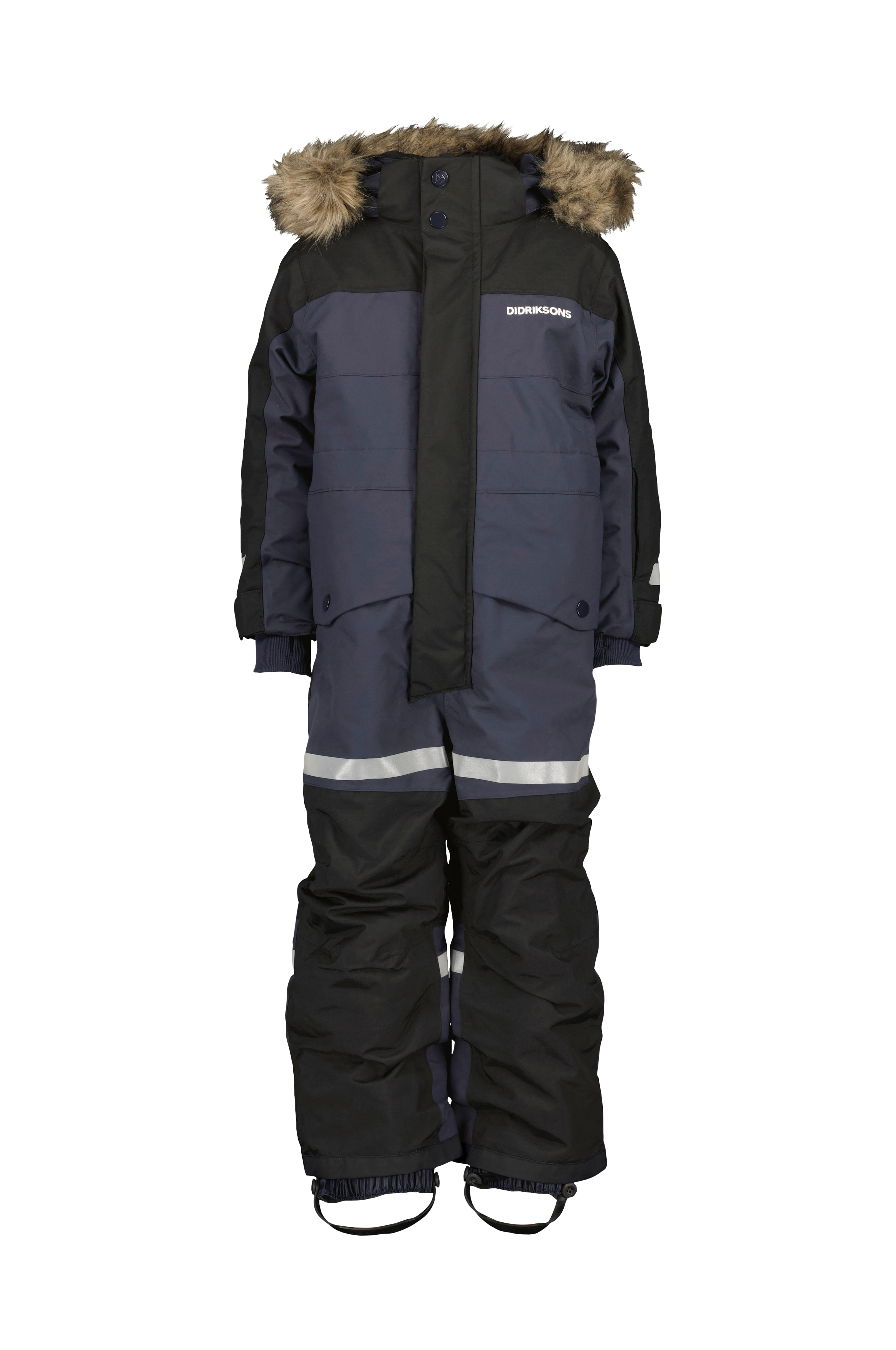 • Aftagelig, justérbar hætte med aftagelig imiteret pelskant • Lynlås • Dobbelt vindflap med velcrolukning • Justérbar talje • Justérbar vidde ved manchetterne • Ribmanchetter ved manchetterne med tommelfingerhuller • To lommer med trykknapslukning • Sneskørt ved enden af benene • Aftagelige, elastiske fodstropper i silikone • Reflekterende detaljer • Indvendige skulderstropper holder overalls på plads • Med funktionen Extend Size kan tøjet forlænges med op til en størrelse.