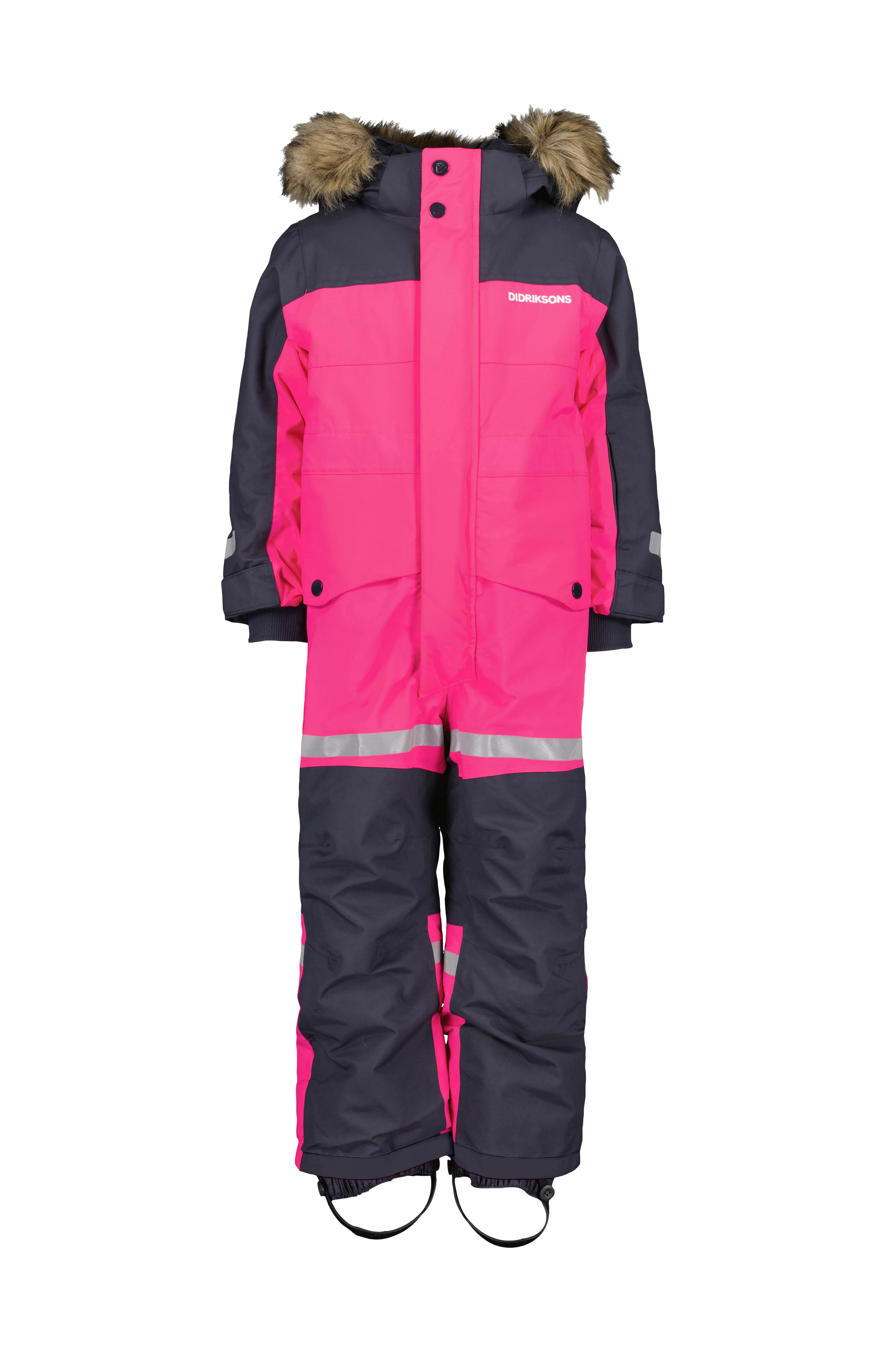 • Aftagelig, justérbar hætte med aftagelig imiteret pelskant • Lynlås • Dobbelt vindflap med velcrolukning • Justérbar talje • Justérbar vidde ved manchetterne • Ribmanchetter ved manchetterne med tommelfingerhuller • To lommer med trykknapslukning • Sneskørt ved enden af benene • Aftagelige, elastiske fodstropper i silikone • Reflekterende detaljer • Indvendige skulderstropper holder overalls på plads • Med funktionen Extend Size kan tøjet forlænges med op til en størrelse.