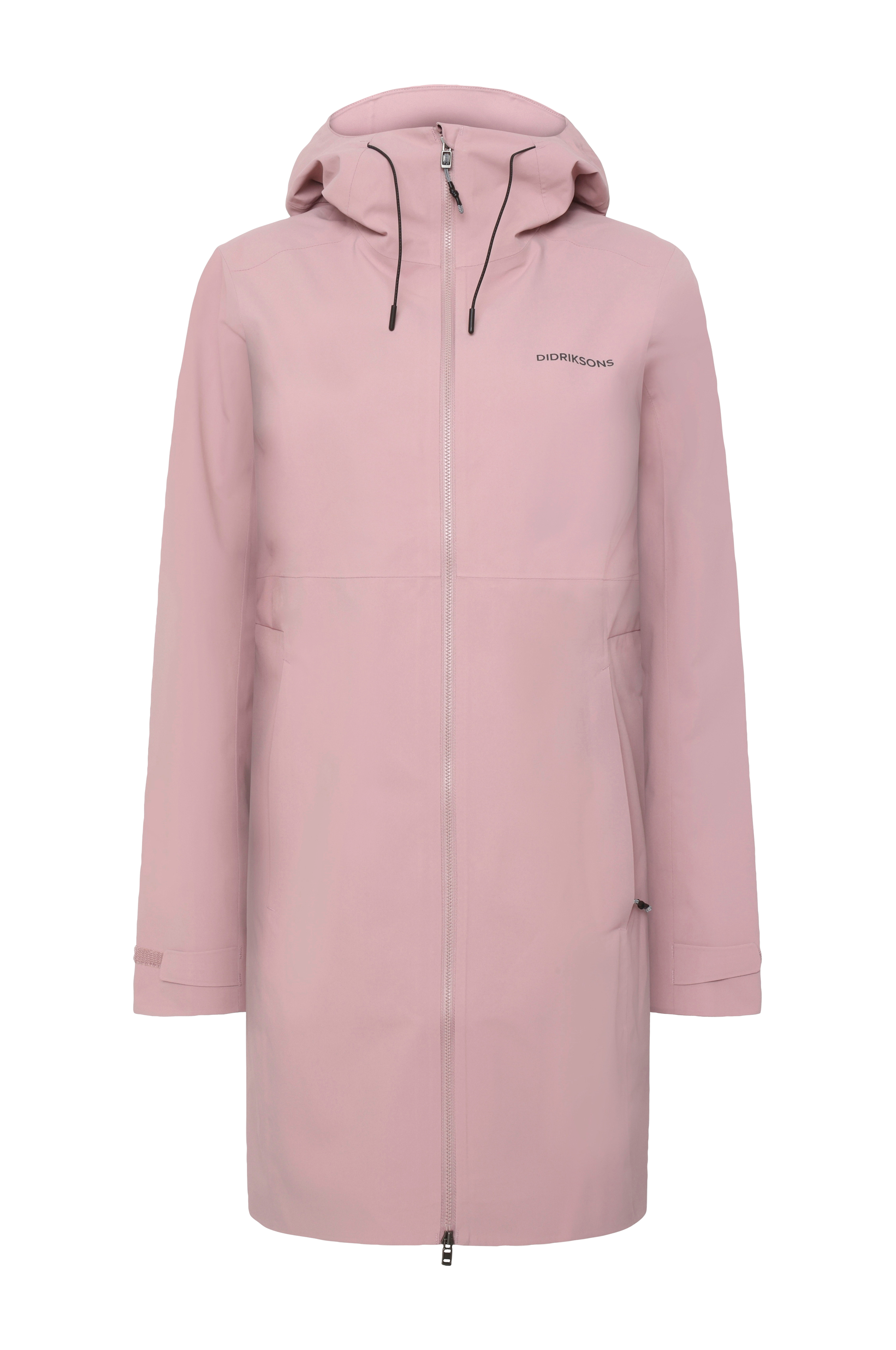 • Klassisk parka med et feminint snit og en plisseret ryg, der giver en perfekt pasform. • Vand- og vindtæt med tapede sømme • Fast, justérbar hætte • Høj krave • To-vejs lynlås • To lommer med lynlås • En inderlomme med lynlås • Indvendig træksnørre ved taljen • Justérbare ærmeafslutninger • Reflekterende detaljer • Vandsøjle: 10 000 mm • Åndbarhed: 8000 g/m2/24h • Længde: 94 cm i størrelse 36