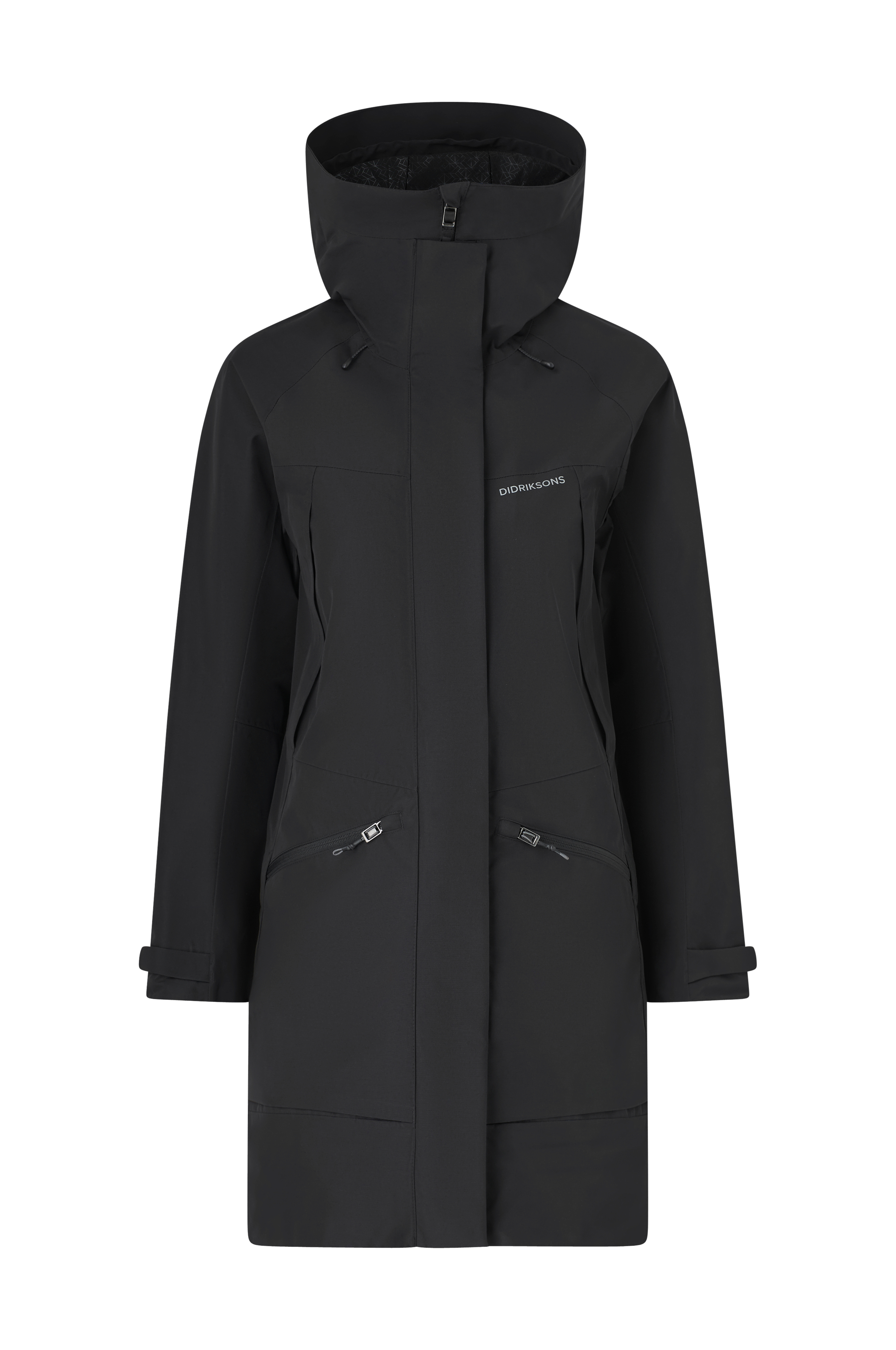 Gode egenskaber, dvs. vind- og vandtæt samt gode lommer. Behageligt lang.