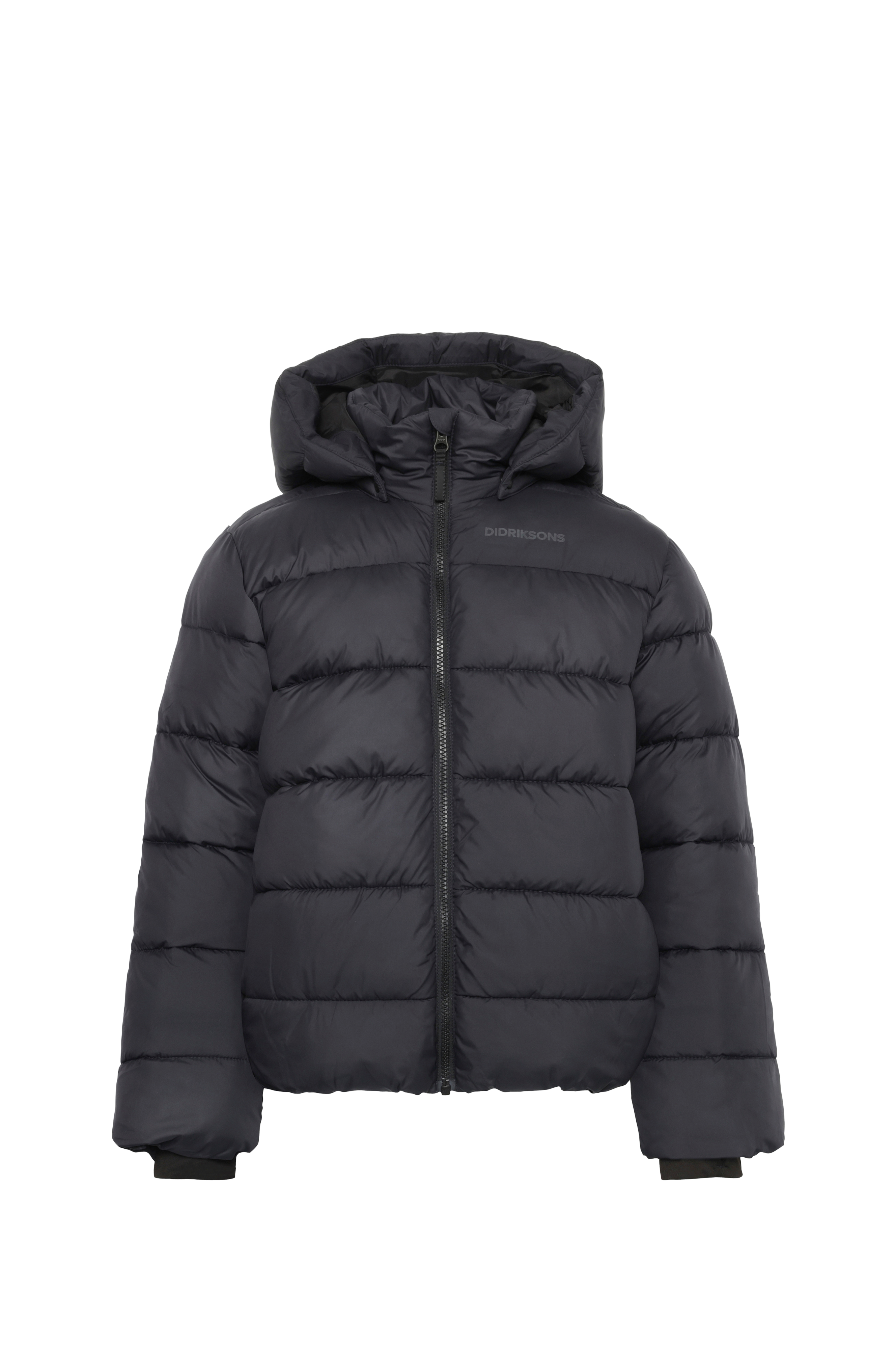 • Quiltet, foret pufferjakke• Aftagelig hætte• Høj krave• Lynlåslukning foran• To lommer med velcrolukning foran• Reflekterende logo på brystet• Ribmanchetter ved manchetterne• Elastik ved nederste kant• Længde: 54 cm i størrelse 130