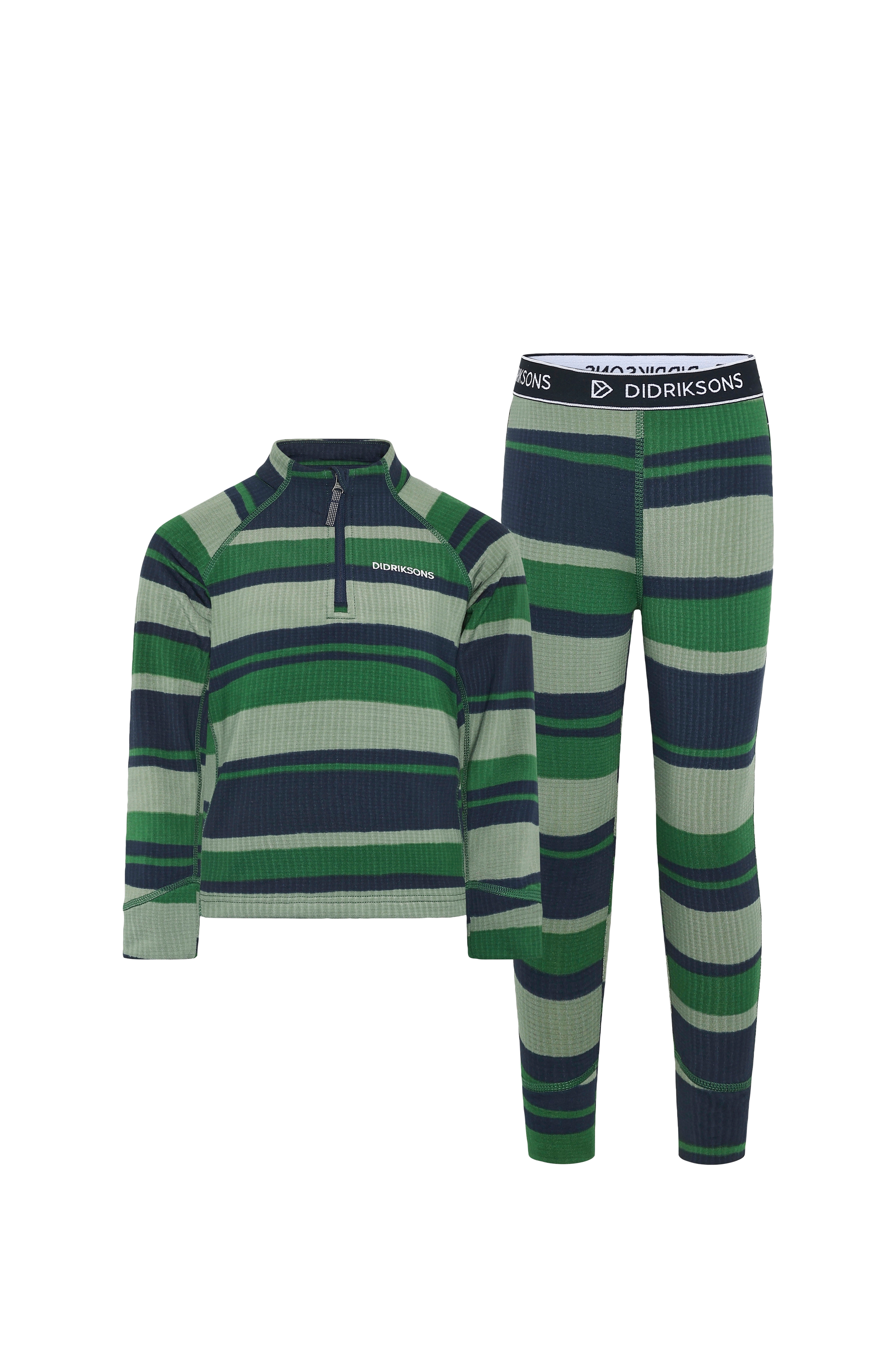 • 2-delt termoundertøj• Pullover med opretstående krave, halv lynlås, hagebeskytter, blød tekstilforing og manchet ved manchetterne• Bukser med elastisk talje, blød tekstilforing og manchet ved enden af benene• Normal pasform