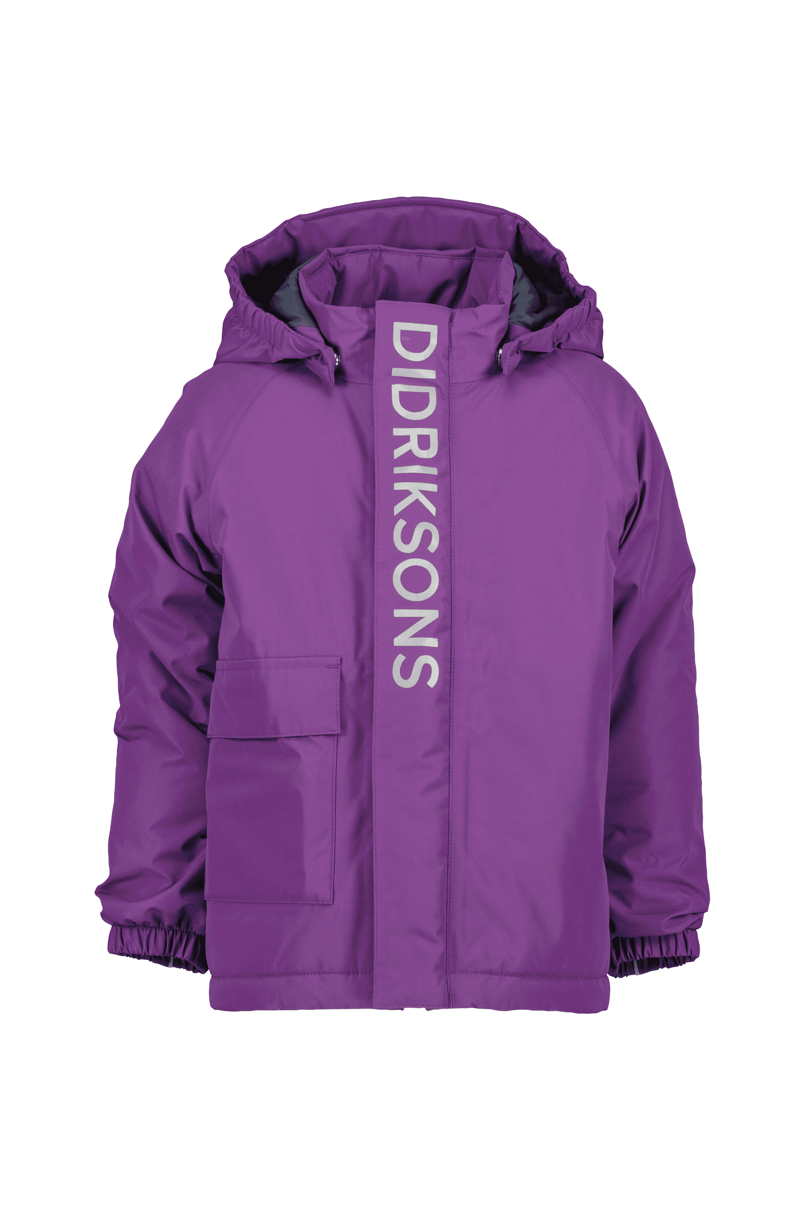 • Foret, vandtæt jakke • Aftagelig hætte • Høj krave med blødt, børstet materiale ved kinden • Lynlås • Dobbelt vindflap over lynlåsen med velcrolukning • To lommer med velcrolukning • Elastik ved manchetterne • Træksnørre ved nederste kant • Reflekstrykt logo • Vandsøjle: 6000 mm • Åndbarhed: 4000 g/m2/24h